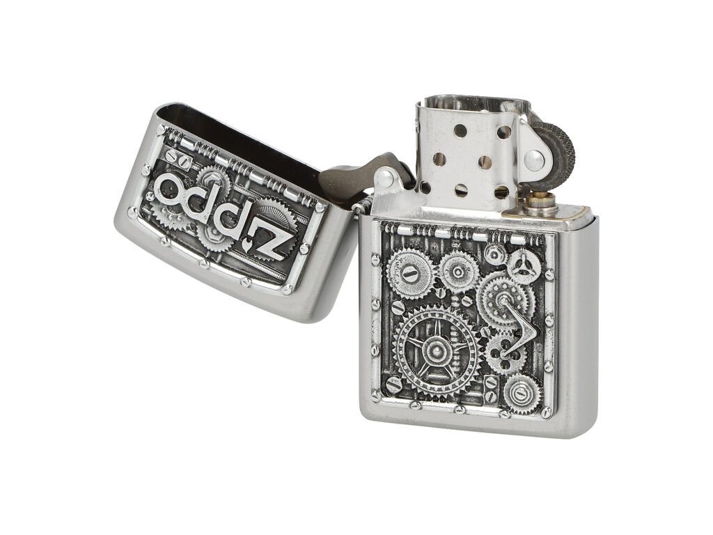 Benzínový zapalovač Zippo Gear Wheels 2004497. Kvalitní zapalovač Zippo má povrch v Chrome satin provedení. Zapalovač je zdobený kovovou 3D plaketu s logem Zippo a ozubenými koly. Zapalovač dodáváme v originální krabičce s logem. Zapalovače Zippo nejsou při dodání naplněné benzínem. Originální příslušenství benzín Zippo, kamínky, knoty a vata do zapalovače Zippo, zajistí správné fungování benzínové zapalovače. Na mechanické závady zapalovače poskytuje Zippo doživotní záruku. Tuto záruku můžete uplatnit přímo u nás. Zapalovače jsou vyrobené v USA, Original Zippo® Bradford.
