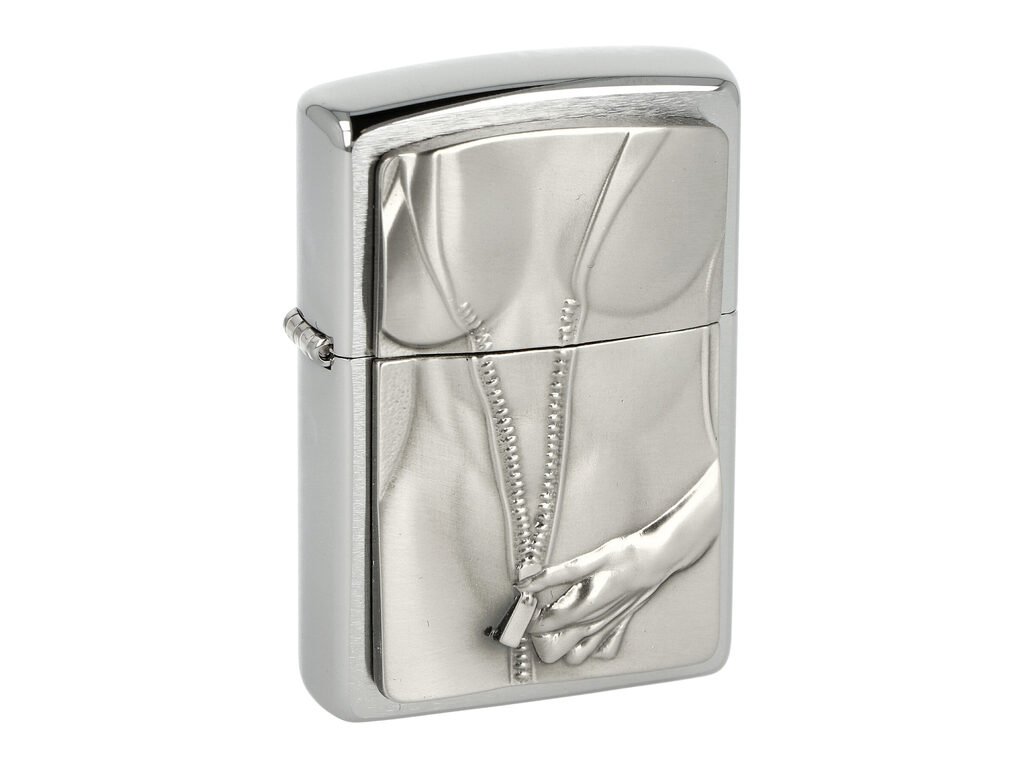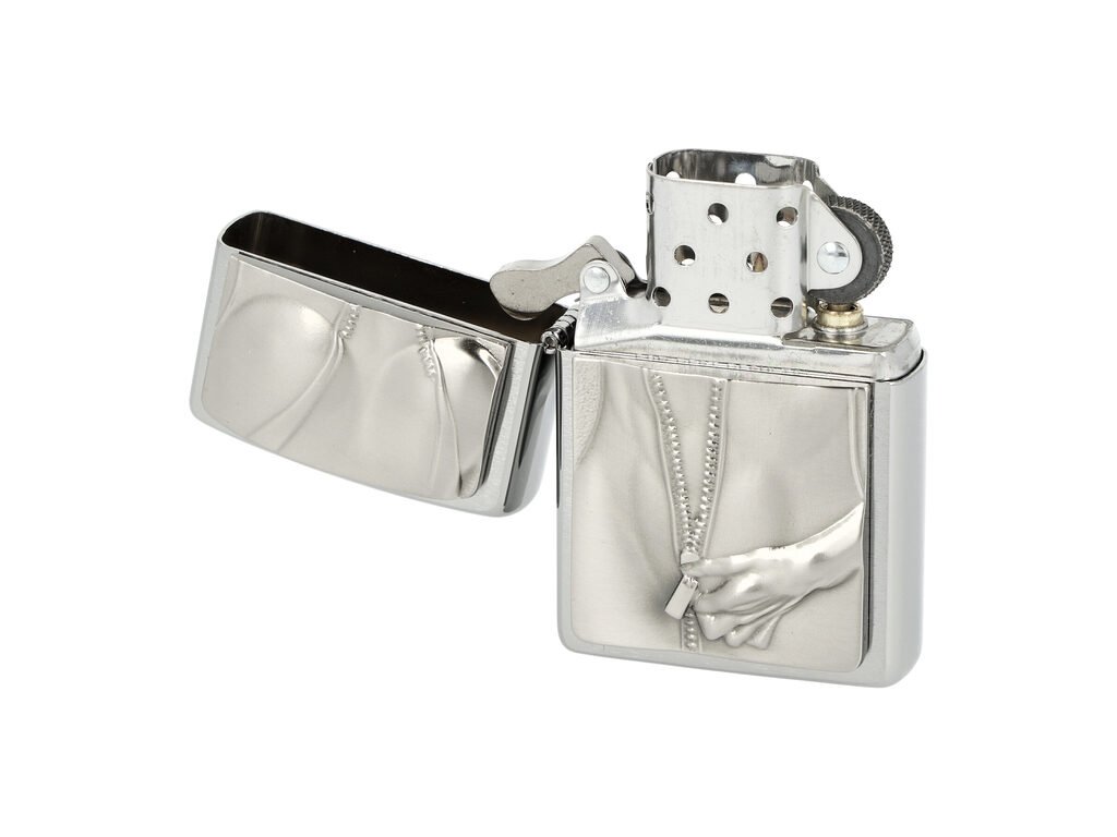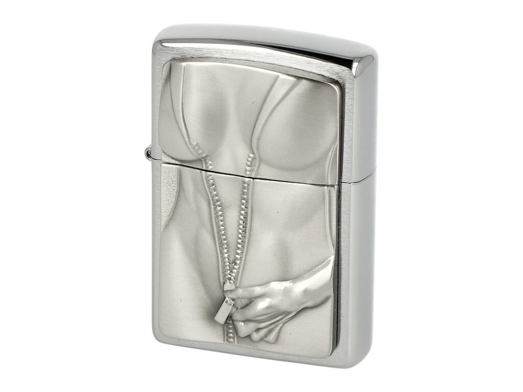 Benzínový zapalovač Zippo Zipper Girl 2004667. Kvalitní zapalovač Zippo v broušeném chromovém provedení je na přední straně zdobený plaketou s 3D motivem ženského výstřihu. Zapalovač je dodávaný v originální krabičce s logem. Zapalovače Zippo nejsou při dodání naplněné benzínem. Správné fungování zapalovače zajistíte originálním příslušenstvím: benzín Zippo 3141 Fluid, kamínky Zippo Flint, knoty Zippo Wick a vata do zapalovače Zippo.