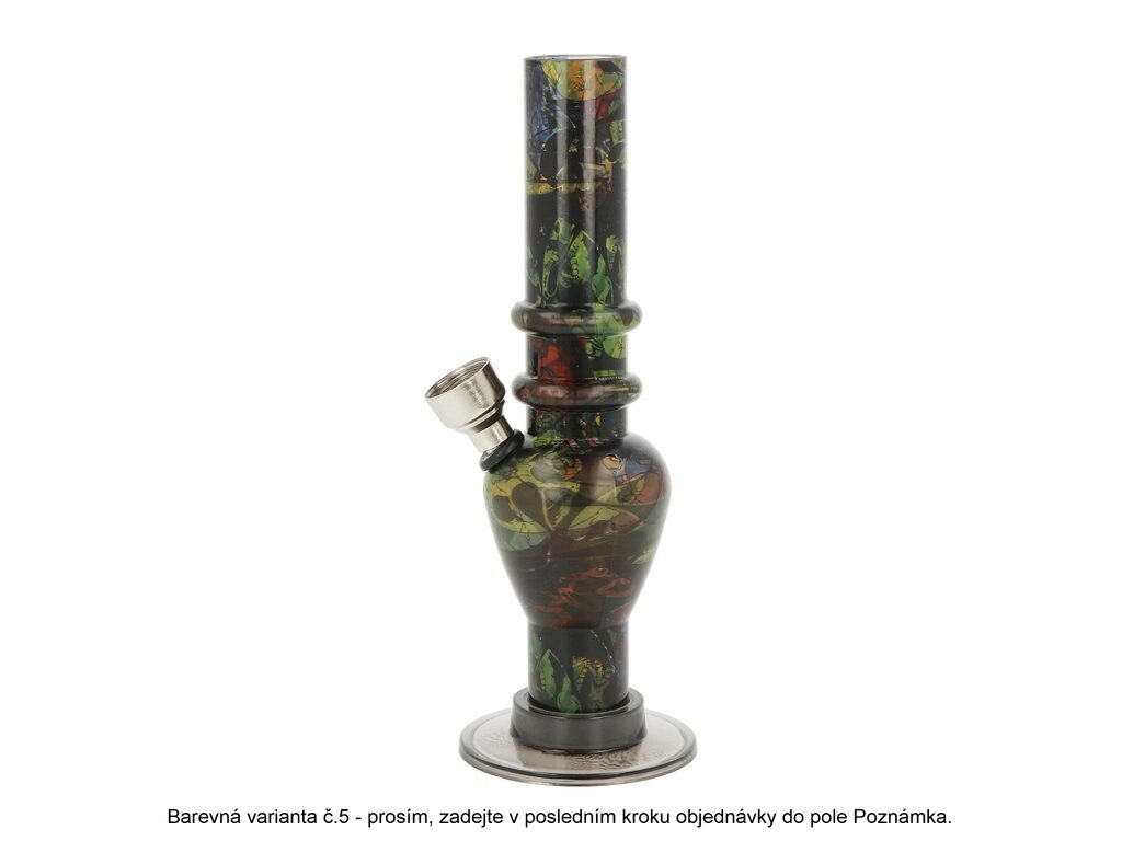 Akrylový mini bong Graffiti. Plastový bong s potiskem je v různobarevném provedení. Transparentní bong vyrobený z tvrzeného plastu tloušťky 2,5 mm je vybavený dvoudílným kovovým chillumem se sítkem. Cena je uvedena za 1 ks. Před odesláním objednávky uveďte číslo barevného provedení do poznámky. Díky jeho malé hmotnosti je vhodný jako bong na cesty.