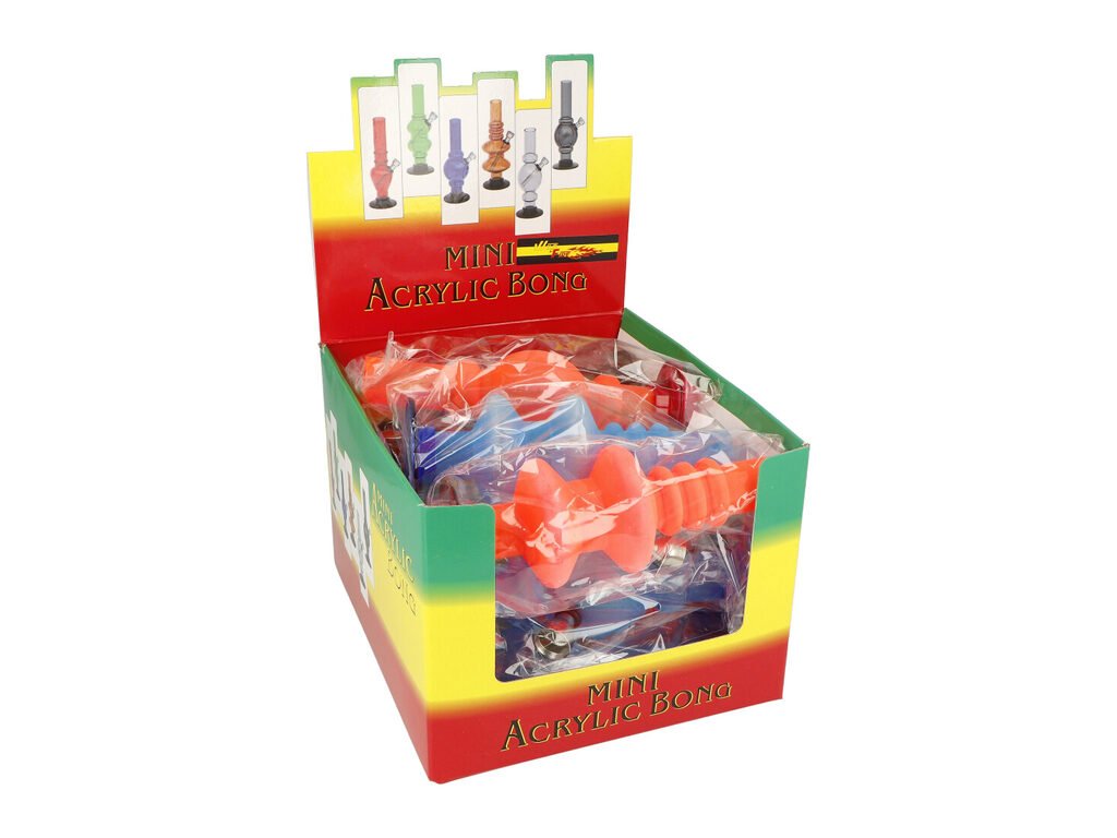 Akrylový bong Mini Frozen. Plastový bong je v barevném matném provedení. Mini bong vyrobený z tvrzeného plastu tloušťky 2 mm je vybavený dvoudílným kovovým chillumem se sítkem. Cena je uvedena za 1 ks.