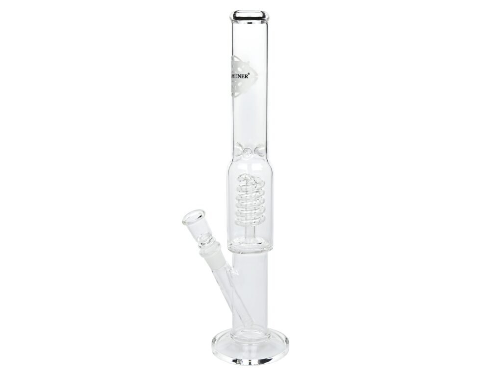 Rovný skleněný bong s perkolací značky Dreamliner. Kvalitně zpracovaný ice bong je na čelní straně zdobený výrazným logem DL. Transparentní bong je vybavený "výstupky" pro udržení kostek ledu k ochlazení kouře a perkolací Spiral, která kouř zjemňuje. Skleněný bong je zakončený silnějším hrdlem a je vyrobený z tepelně odolného skla. Chillum s difuzérem je jednodílný.