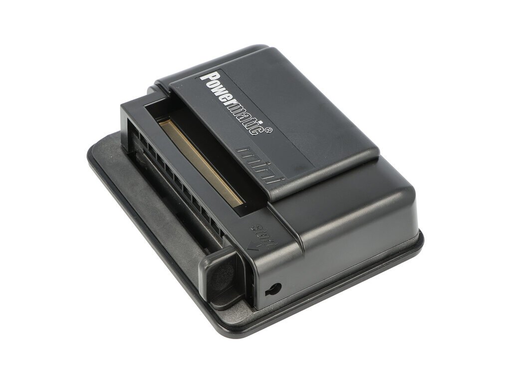 Plnička cigaretových dutinek Powermatic Mini v černém provedení. Plastová manuální plnička umožňuje plnit cigaretové dutinky jednotlivě jedním pohybem. Je určená pro plnění dutinek klasické velikosti King Size nebo dlouhých dutinek 100mm o průměru 8mm.