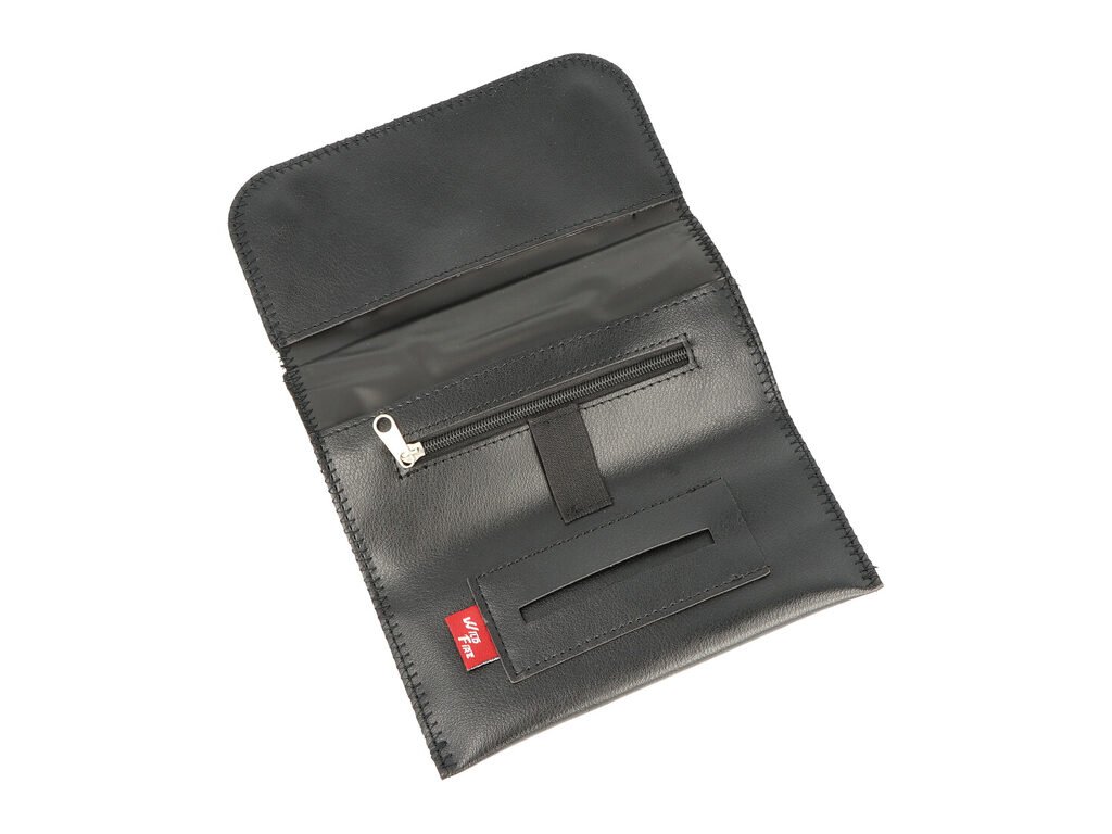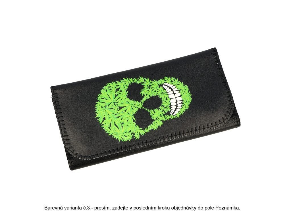 Koženkové pouzdro na tabák Wildfire Weed. Pouzdro vyrobené z jemné koženky je zdobené barevným motivem Weed. Po rozevření najdeme dvě hlavní kapsy na tabák, filtry a jednu menší s prostorem na papírky. Ve čtvrté uzavíratelné kapse na zip schováte další kuřácké potřeby, které můžete mít vždy při sobě na jednom místě. Zapalovač je možné přichytit uprostřed pomocí gumy. Uzavření pouzdra zajišťuje magnet. Pouzdro je dodávané v igelitovém sáčku. Cena je uvedena za 1 ks. Před odesláním objednávky uveďte číslo barevného provedení do poznámky.