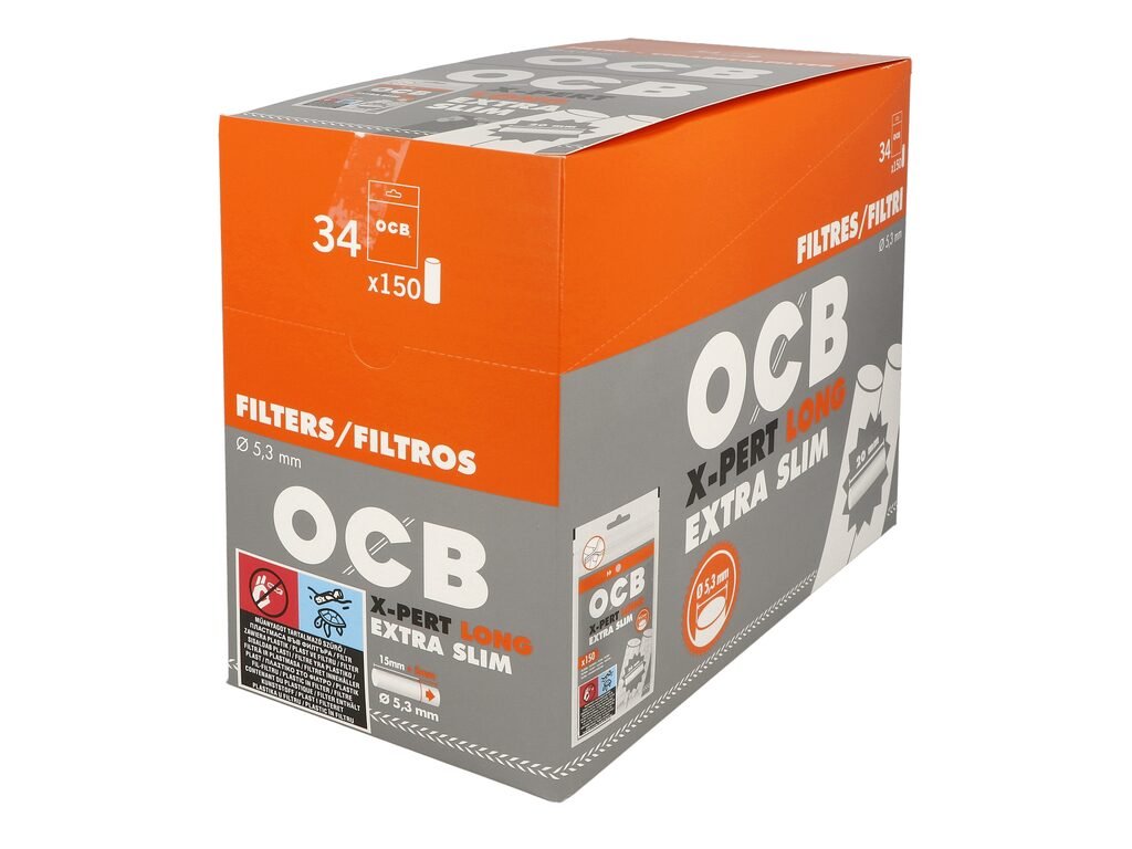 Cigaretový filtr OCB Extra Slim Long X-Pert. Slim filtry o průměru 5,3 mm a dlouhé 20 mm jsou o 5 mm delší oproti 15 mm délky klasického slim filtru. Díky jejich délce ušetříte při balení svých slim cigaret a více si vychutnáte příjemný pocit při kouření. Sáček obsahuje 150 ks filtrů. Filtry jsou dodávané v uzavíratelném sáčku. Cena je uvedená za jeden sáček. Prodej pouze po celém balení (boxu) 34 ks sáčků.