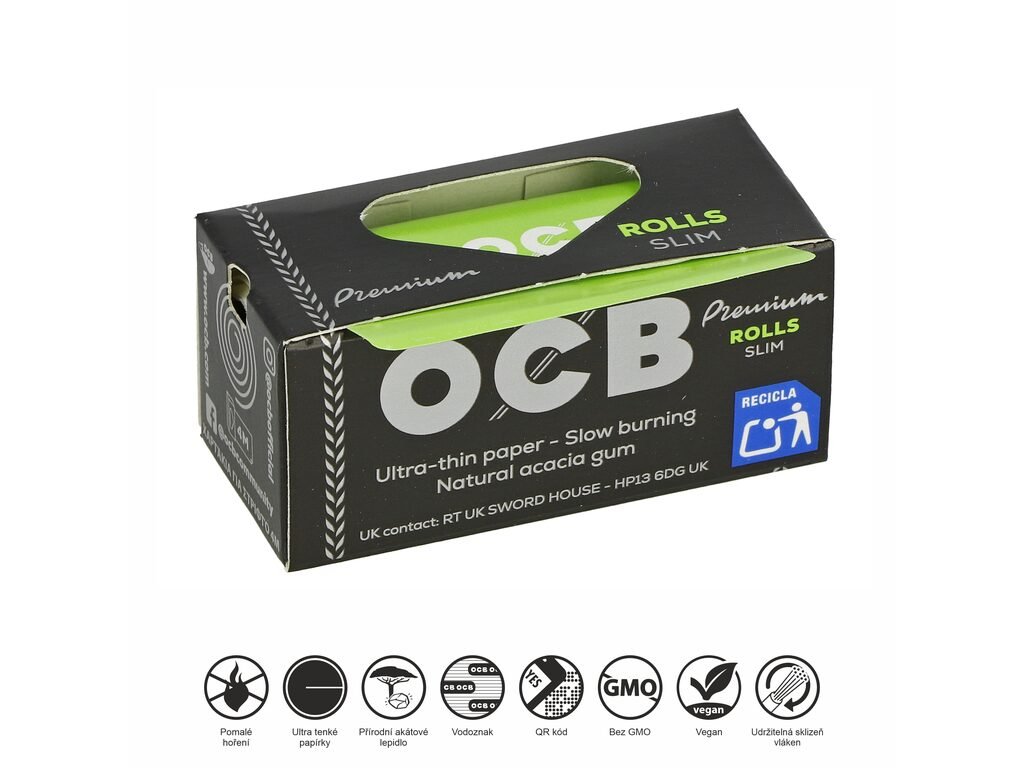 Cigaretové papírky OCB Rolls. Délka 4 m, šířka 45 mm. Prodej pouze po celém balení (displej) 24 ks.
