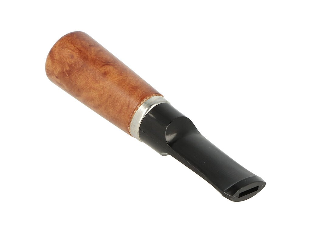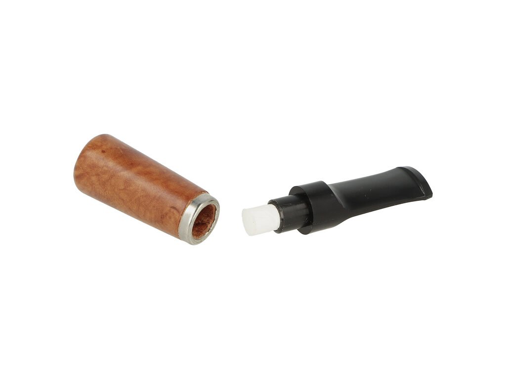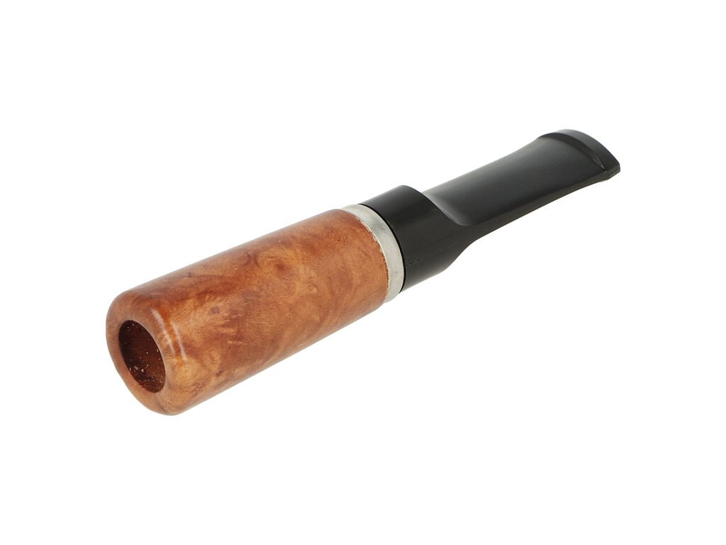 Krátká cigaretová špička BPK s filtrem 7 mm a plastovým náustkem. Kvalitně zpracovaná cigaretová briárová špička ve světle hnědém polomatném provedení s jemnou kresbou je vyrobená z kvalitního briárového dřeva. Černý náustek je lesklý. Vhodné filtry do této špičky jsou cigaretové filtry BPK Long 7,5 mm.