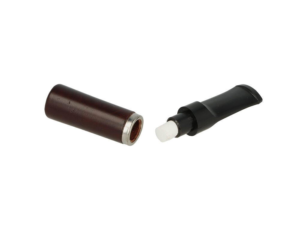 Krátká cigaretová špička BPK s filtrem 7 mm a plastovým náustkem. Kvalitně zpracovaná cigaretová špička z hruškového dřeva je ve tmavě hnědém polomatném provedení s málo výraznou kresbou. Černý náustek je lesklý. Vhodné filtry do této špičky jsou cigaretové filtry BPK Long 7,5 mm.