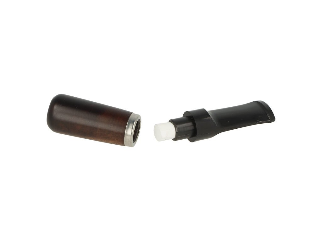 Krátká cigaretová špička Slim BPK s filtrem 7 mm a plastovým náustkem. Briárová cigaretová špička pro slim cigarety ve tmavě hnědém polomatném provedení s jemnou kresbou je vyrobená z kvalitního briárového dřeva. Černý náustek je lesklý. Vhodné filtry do této špičky jsou cigaretové filtry BPK Long 7,5 mm.