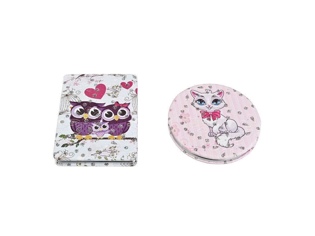 Kapesní zrcátko Faro. Dámské kosmetické zrcátko s koženkovým pestrým povrchem a kamínky v chromovém provedení nabízíme v hranatém nebo kulatém tvaru. Zrcátko má dvě odrazové plochy a praktické zavíraní na magnet. Rozměry: kulaté - 7x1,1, hranaté - 6,2x8,5x1,1cm. Prodej pouze po celém balení (displej) 12 ks.