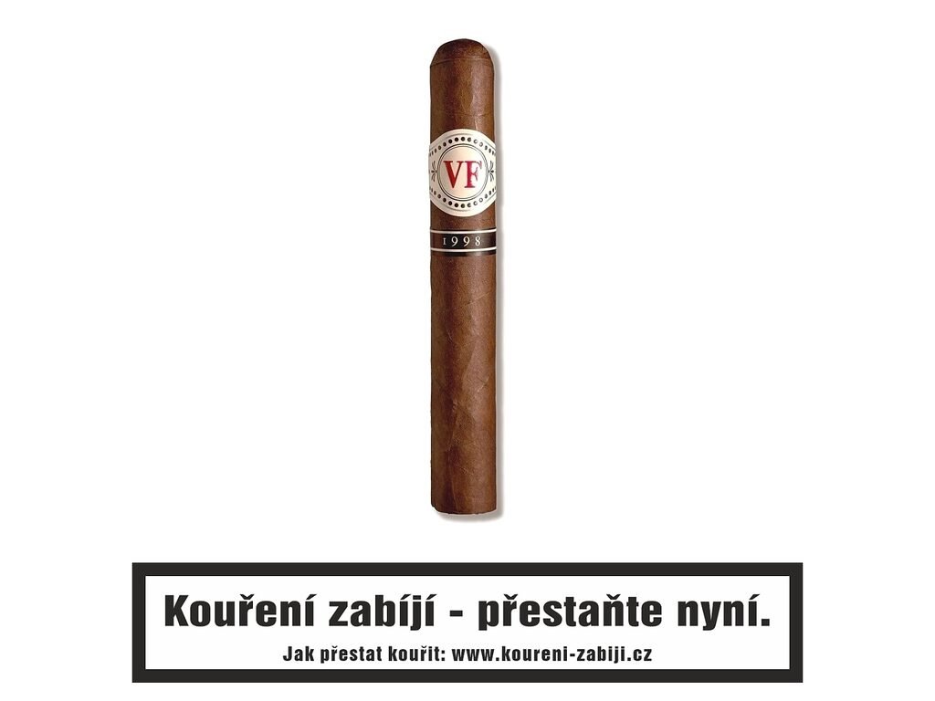 Vegafina 1998 VF 54 Tubos. Nová řada dominikánských doutníků představená výrobcem v roce 2019, které jsou vyrobené z tabáku tři roky stařeného ve walk-in humidorech v Dominikánské Republice. Jak již vidíme v názvu, tato řada byla vytvořená k oslavě roku 1998, kdy byla společnost Vegafina založená. Označení 50, 52, 54 je stejné jako u špičkové série Behike značky Cohiba. Vegafina patří pod dominikánskou část Habanos, proto bylo použito stejného označení. Toto číslo neznamená nic jiného než průměr doutníku, respektive jeho prstýnku. Ručně balené prémiové doutníky Vegafina jsou vyráběné z výběrových listů tabáku, které doutníkům dávají jedinečný charakter. Pro tyto středně silné doutníky je typická cedrová chuť spolu s chutí slanou, kterou doplňují sladké tóny vanilky, třtinového cukru a pepře. Doutníky Vegafina 1998 VF 54 jsou balené po 3 ks v originální hliníkové tubě a papírové krabičce. Prodávají se pouze po celém balení.