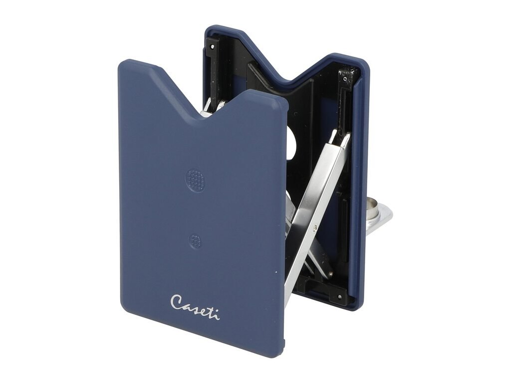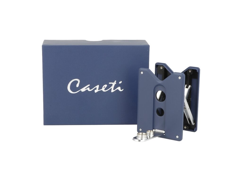 Elegantní vyštípávač Caseti s dvěma velikostmi ostří. Kovový doutníkový vyštípávač je precizně zpracovaný a jeho modrý povrch je v příjemné matné úpravě. Na čelní straně najdeme výklopné dvě ostří s průměrem 7,5 a 10 mm. Perfektně nabroušené ostří vyrobené z kvalitní nerezové oceli zajišťuje dokonalý řez, bezproblémové používání a dlouhou životnost. Stabilitu vyštípávače na stole zajištuje rozložitelný mechanismus, díky kterému se dá složit do praktického tvaru. Vyštípávač je dodávaný v látkovém sáčku a v originální dárkové krabičce.