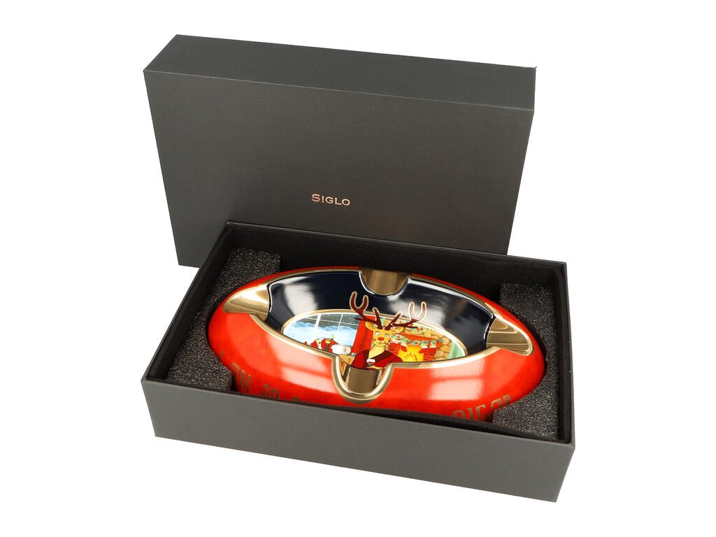 Doutníkový popelník Siglo Deer na 4 doutníky. Kvalitně zpracovaný oválný keramický popelník ve dvojbarevném provedení s prvky ve zlaté barvě je zdobený motivem jelena s doutníkem. Díky lesklé glazuře má popelník hladký povrch, který přispívá ke snadnějšímu čištění. Masivní popelník na doutníky je vybavený čtyřmi odklady pro doutník. Popelník je dodávaný v dárkové krabici Siglo.