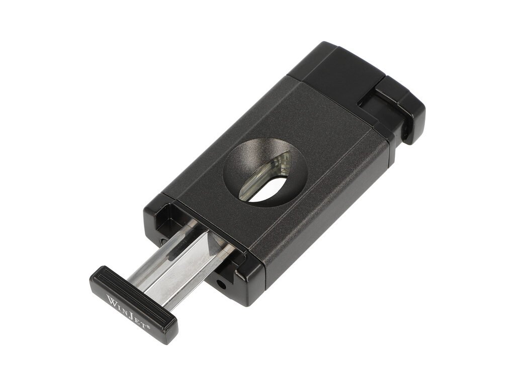 Doutníkový zapalovač Winjet Premium Line 2xjet s ořezávačem doutníků. Kovový tryskový zapalovač na doutníky je v černém metalickém provedení. Na čelní straně zapalovače je umístěný výsuvný ořezávač s V-cut ořezem do tvaru V. Oříznutí doutníků do tvaru V se opět stává populárním, jelikož takový ořez může zlepšit nejen tah doutníku, ale především změnit - zlepšit chuť při jeho kouření. O zapálení doutníku se postarají dvě trysky, které po zapálení vyvinou silný plamen. Na spodní části zapalovač najdeme plnící ventil plynu a regulaci intenzity plamene. Zapalovač je dodávaný v dárkové krabičce.