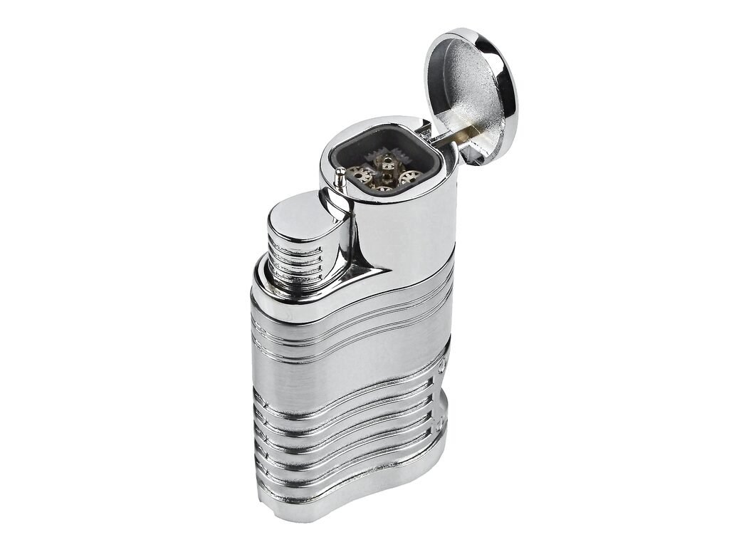 Doutníkový zapalovač. Tryskový zapalovač na doutníky má integrovaný vyštípávač. Zapalovač je plnitelný. Doutníkový zapalovač je dodáván v dárkové krabičce.