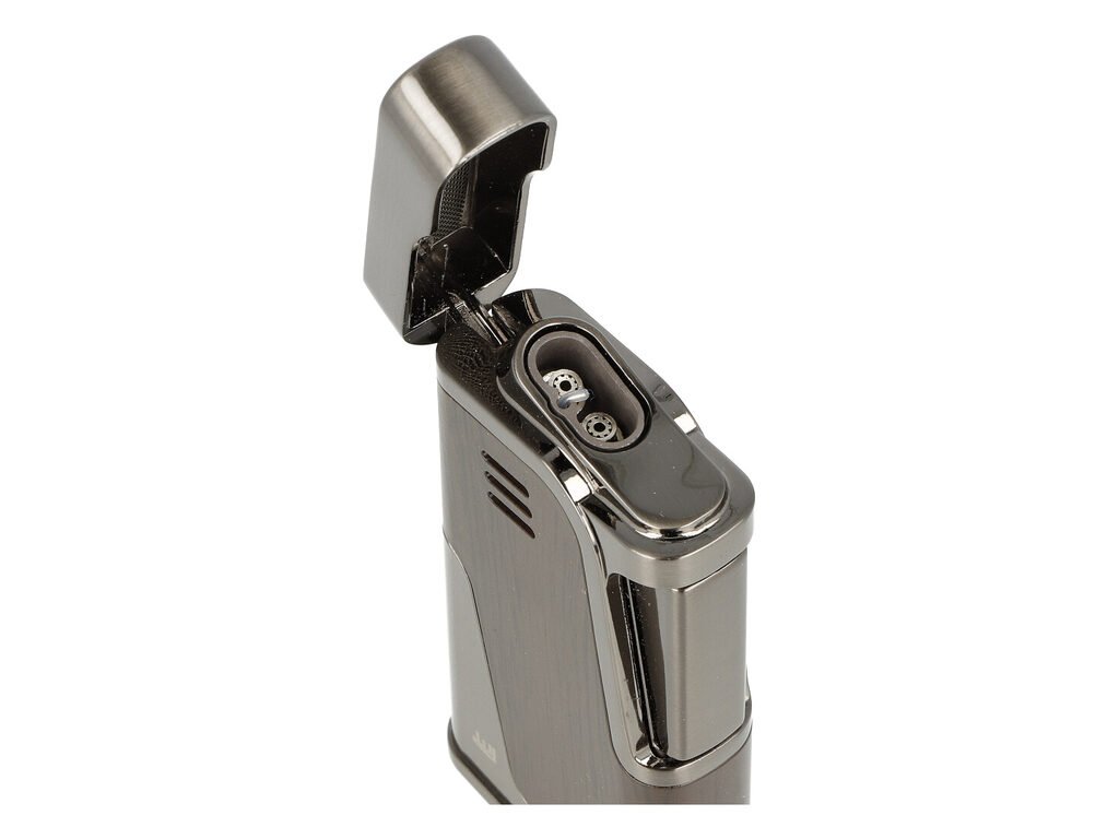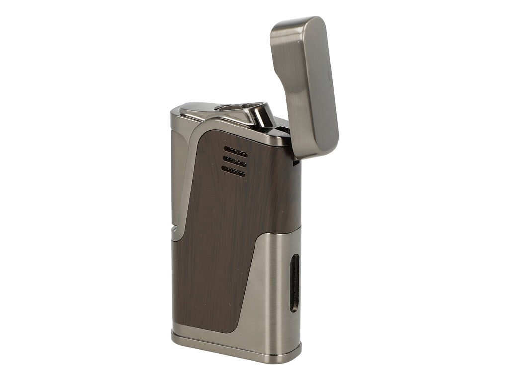 Zapalovač na doutníky Winjet Rantum Cigar s integrovaným vyštípávačem a dvěma tryskami. Kovový tryskový zapalovač má lesklý povrch v gunmetalovém provedení. Po odklopení horního krytu a stisknutí tlačítka dojde k zapálení dvou trysek, které vyvinou silný plamen pro zapálení Vašeho doutníku. Díky bočnímu průhlednému okénku můžeme kontrolovat hladinu plynu v zapalovači. Ve spodní části najdeme výklopný doutníkový vyštípávač, regulaci plamene a plynový plnící ventil. Zapalovač je dodávaný v dárkové krabičce.