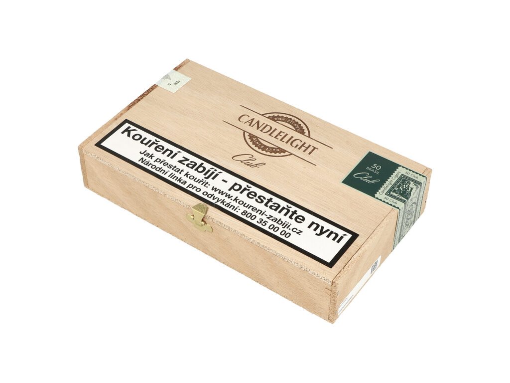 Suché doutníky Candlelight Club Brasil v cedrovém boxu. Oblíbené strojově balené malé doutníčky jsou vyráběné v Německu. Při balení je použito tabáků z Brazílie, Dominikánské republiky a Kuby. Jemné a lehce kořeněné cigarillos jsou balené v celofánu a dodávané v cedrovém boxu po 50 ks. Prodávají se pouze po celém balení. Jelikož se jedná o doutníky typu suchého, není je nutné skladovat v humidoru.
