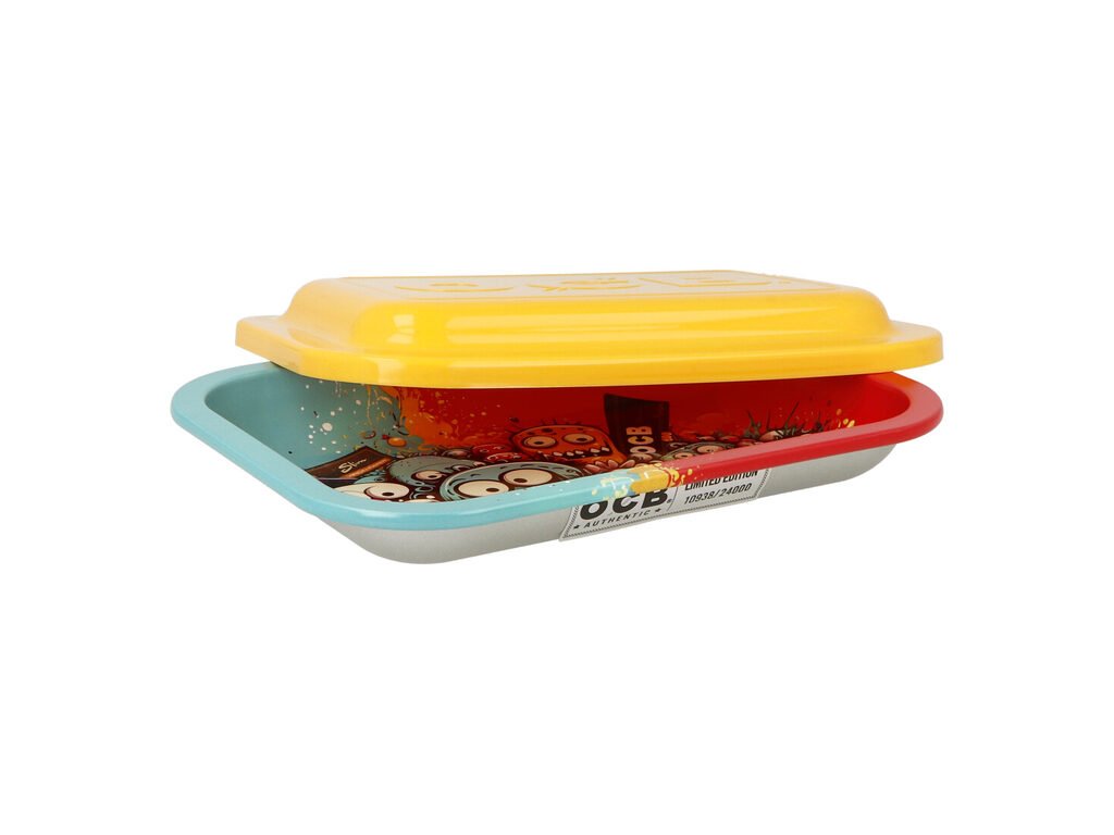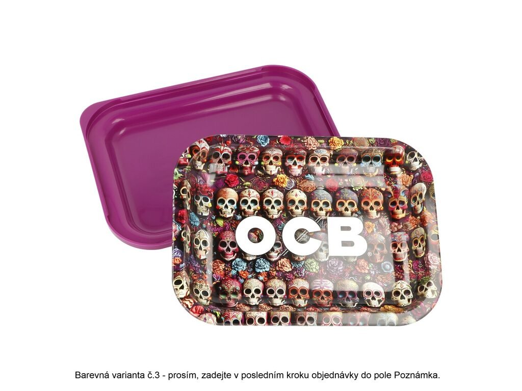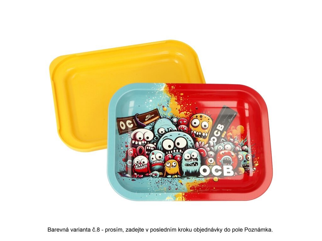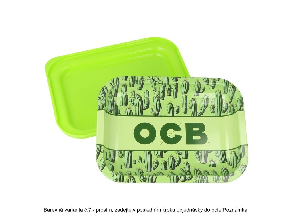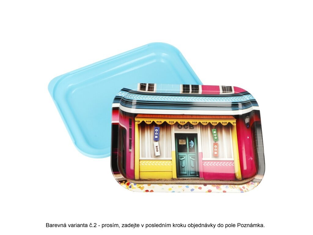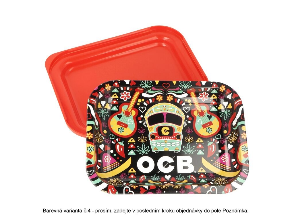 Balící podložka OCB s víkem. Zavírací plechová podložka na balení cigaret je potištěná atraktivními motivy OCB. Praktická podložka - tácek je opatřen barevným plastovým víkem. Rozměry podložky: 18,5x14x3,3cm(s víkem). Před odesláním objednávky uveďte číslo barevného provedení do poznámky. Cena je uvedena za 1 ks.