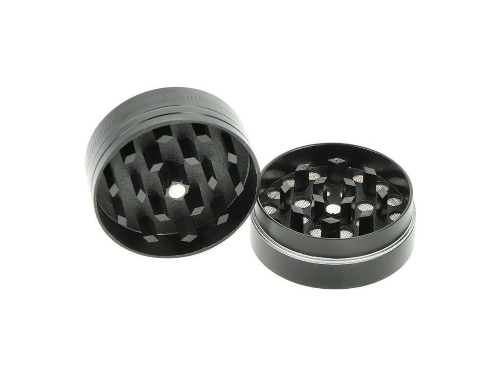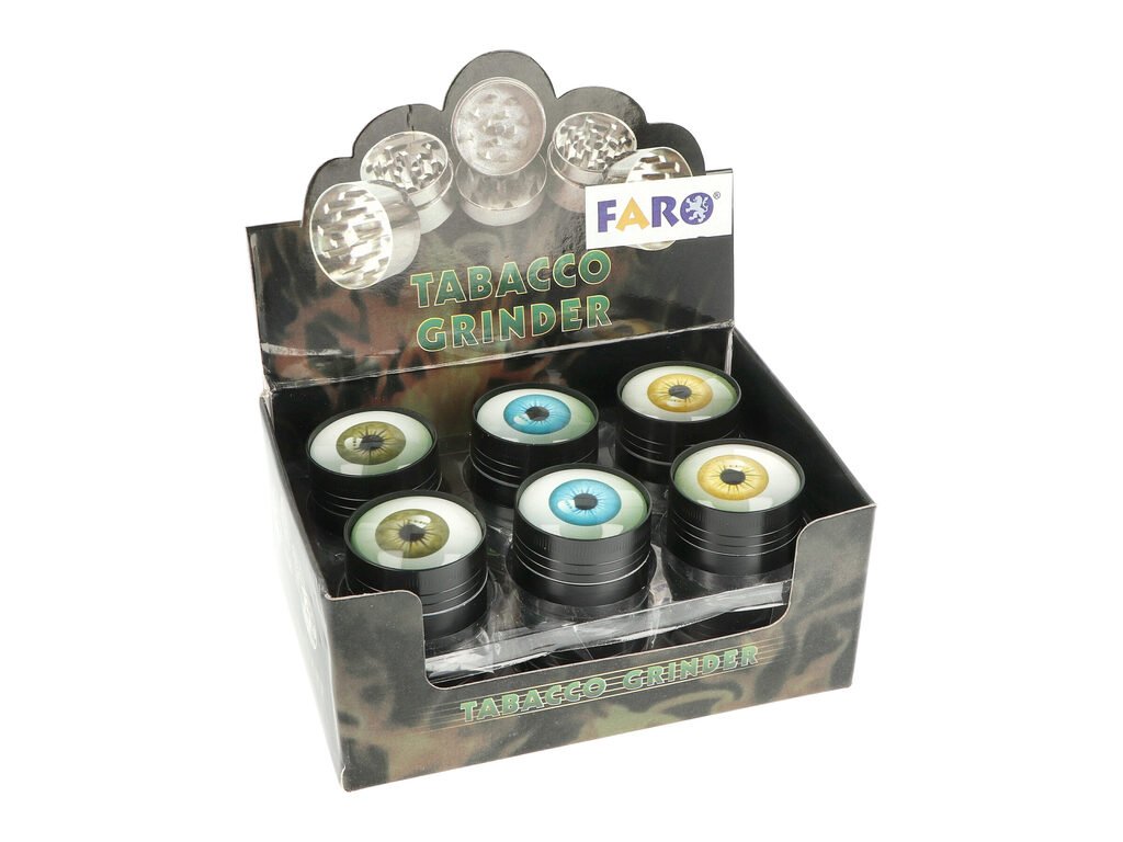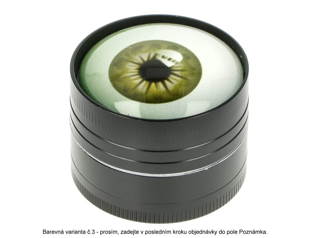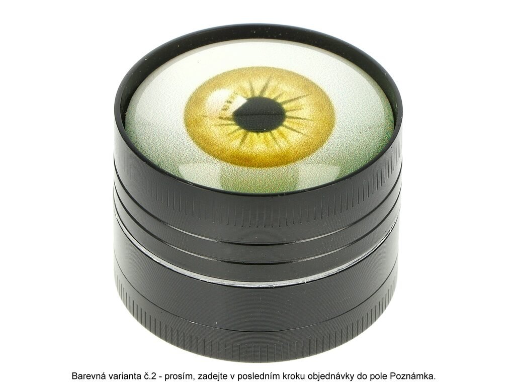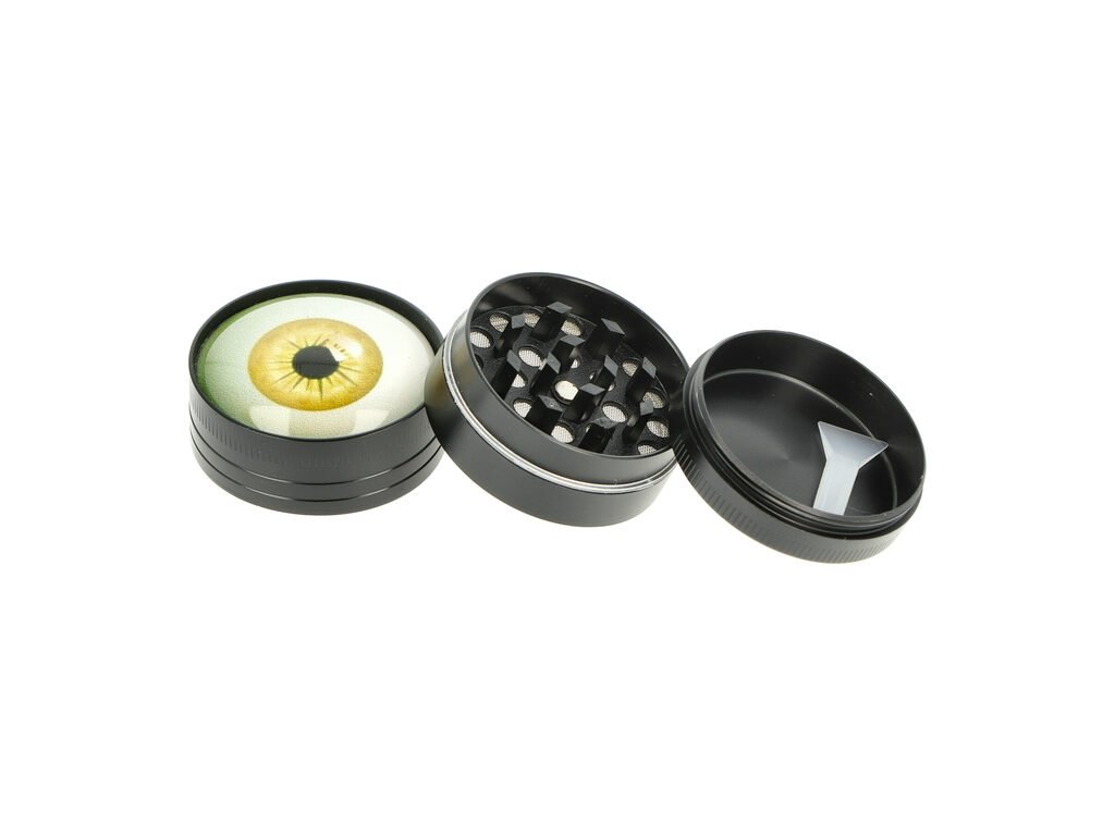 Kovový drtič tabáku Eyes. Třídílná drtička se závitem, sítkem a zásobníkem na tabák je vyrobena CNC technologií. Drtička je v černém polomatném provedení s jemně broušeným povrchem. Magneticky uzavíratelné víčko drtičky je zdobené barevným motivem oka pod sklem. Ostře broušené zuby ve tvarů diamantů velmi jemně nadrtí vaší směs do potřebné hrubosti. Rozměry: průměr 40mm, výška 33mm. Cena je uvedena za 1 ks. Před odesláním objednávky uveďte číslo barevného provedení do poznámky.