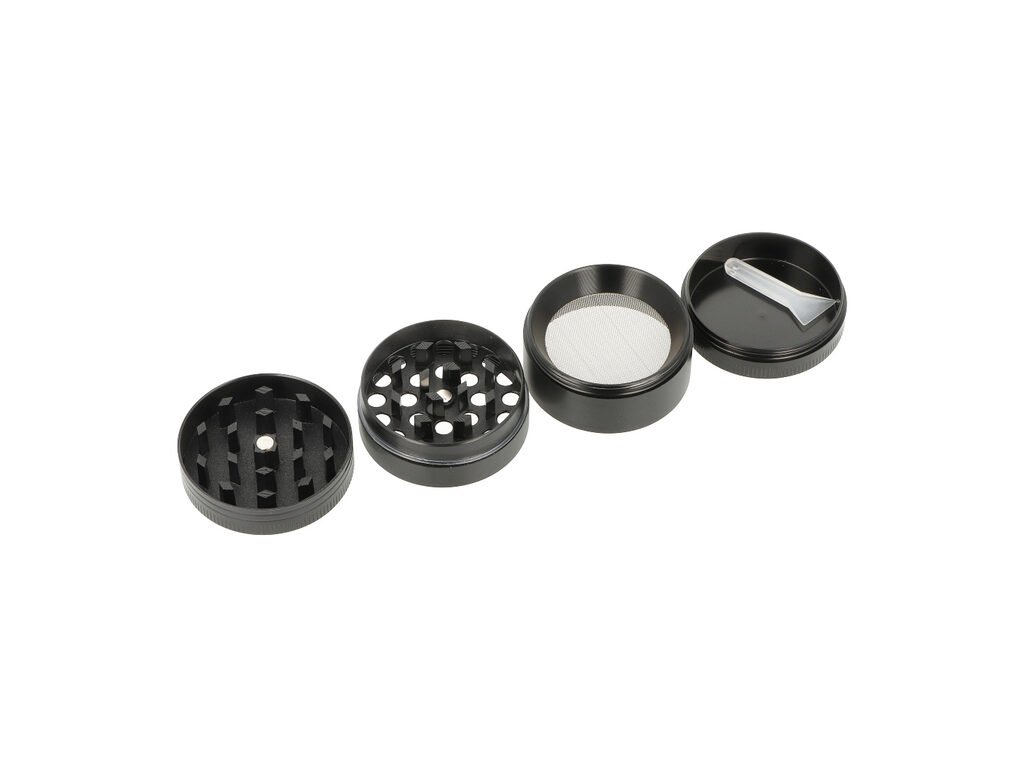 Kovová drtička tabáku a bylin Super Heroes Skulls Glow in the dark . Čtyřdílný drtič konopí a jiných bylinek se závitem, sítkem a zásobníkem je vyroben CNC technologií. Drtička v černé barvě je zdobená potiskem s Glow efektem, který ve tmě svítí. Drtící část je pevně spojená na závit, víčko na magnet. Broušené ostří nožů ve tvaru diamantu velmi jemně nadrtí vaši směs do požadované hrubosti. Cena je uvedená za 1 ks. Před odesláním objednávky uveďte číslo barevného provedení do poznámky.