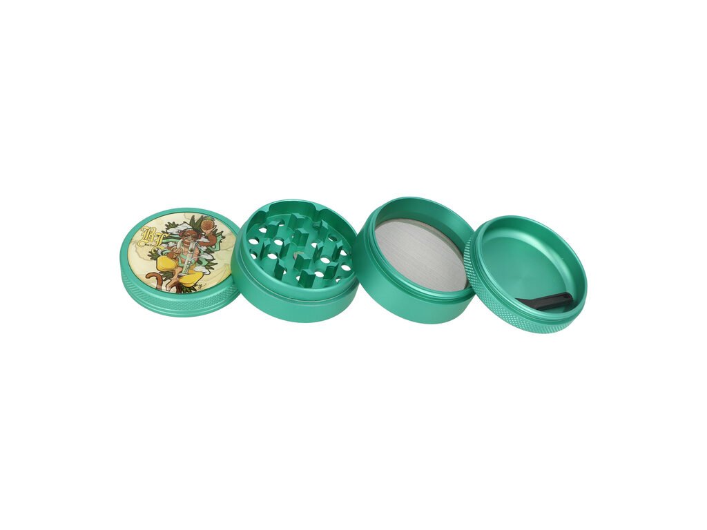 Kovový drtič tabáku Black Leaf Hanuman ALU je atraktivní čtyřdílný drtič se závitem, sítkem a zásobníkem na tabák, který je vyroben z kvalitního hliníku CNC technologií. Kvalitně zpracovaný povrch s jemnou texturou je upraven eloxováním v tmavě zeleném metalickém provedení.