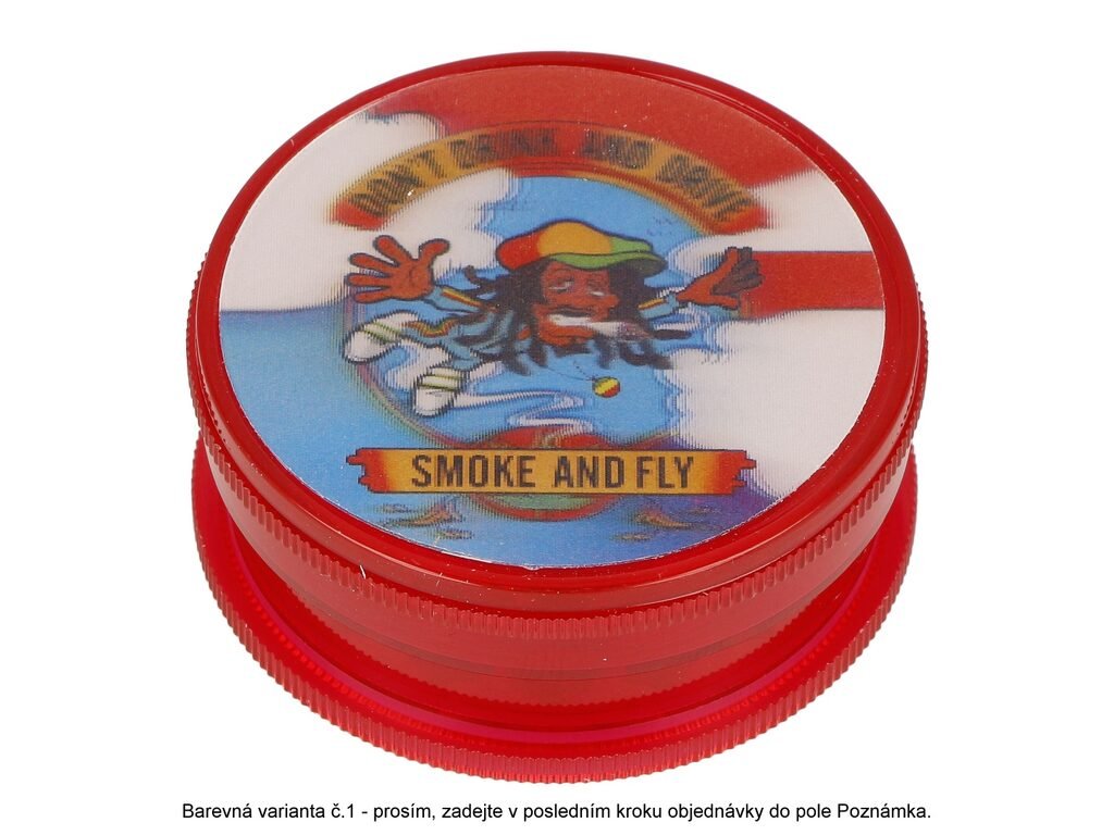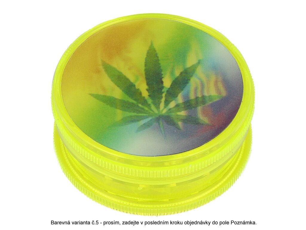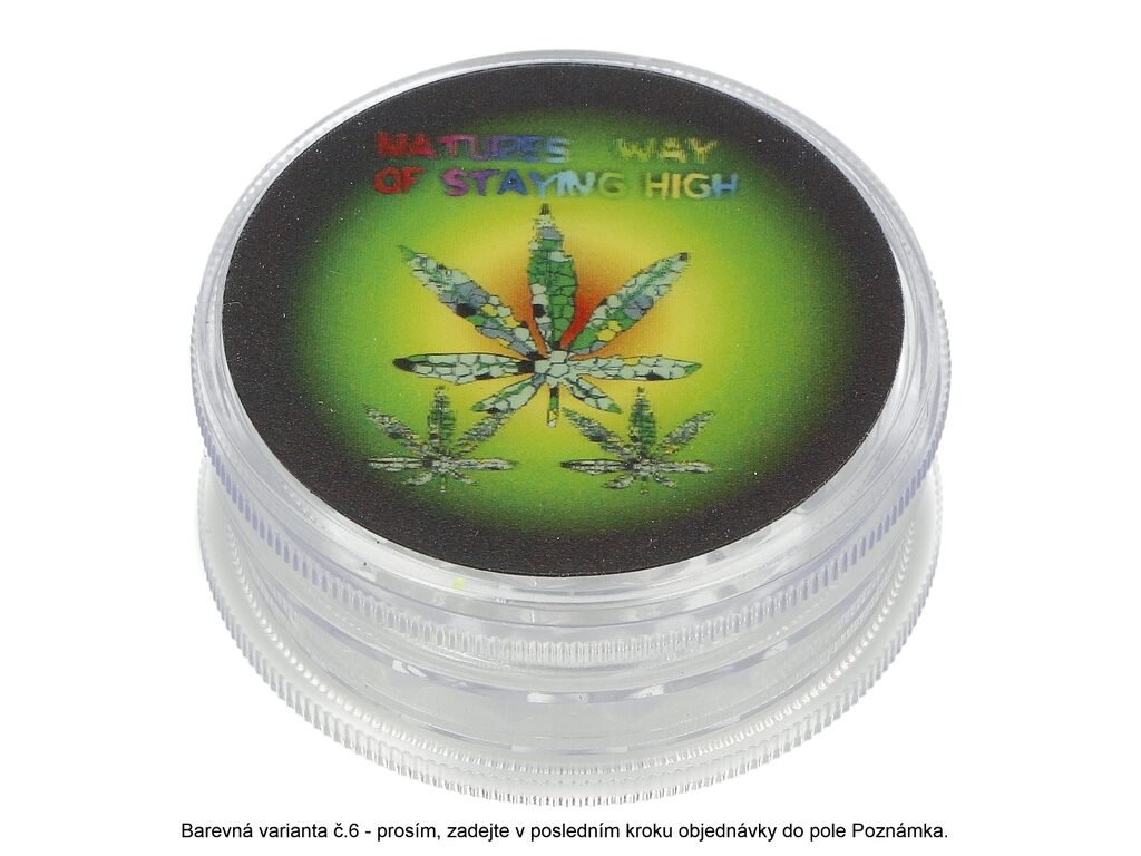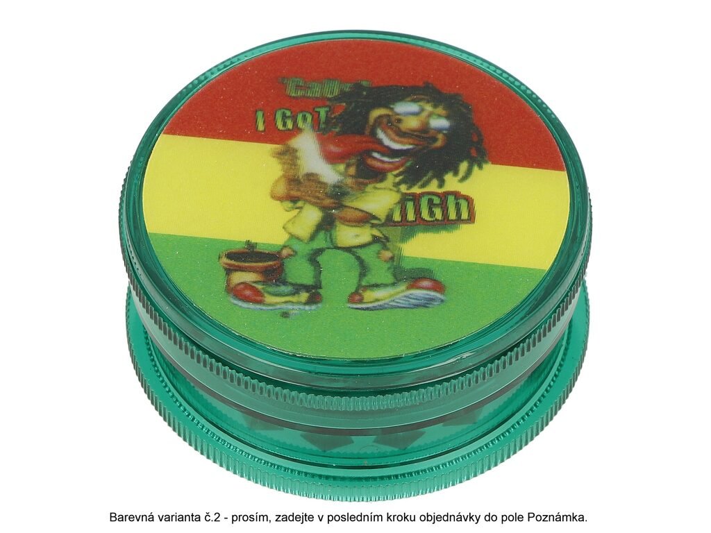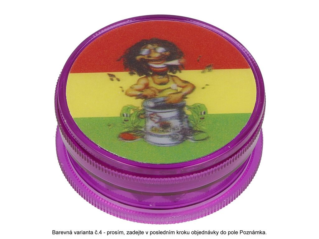 Plastový drtič tabáku Hemp Rasta s 3D motivem . Trojdílný drtič se závitem. Rozměry drtiče tabáku: průměr 60mm, výška 25mm. Cena je uvedena za 1 ks.