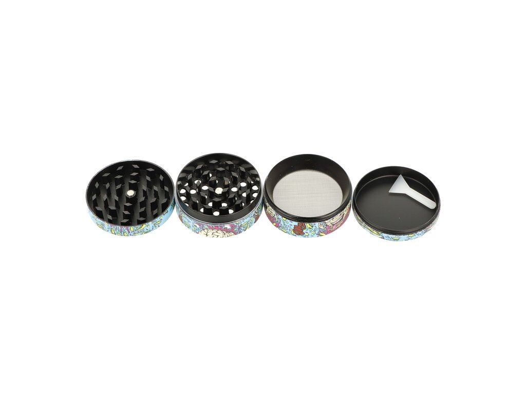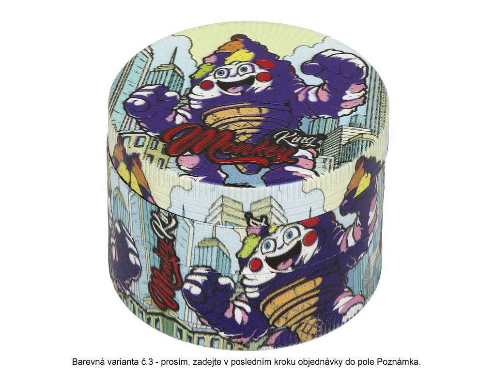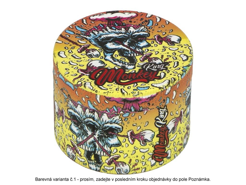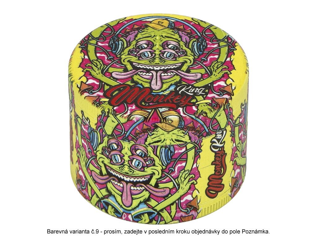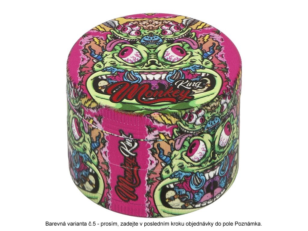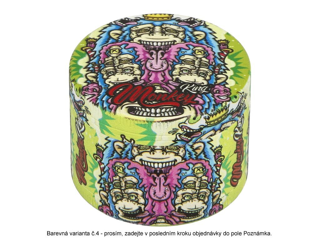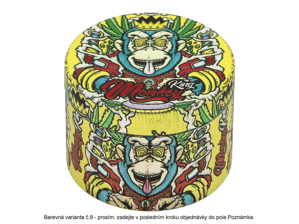 Kovová drtička tabáku a bylin Monkey King. Čtyřdílný drtič konopí a jiných bylinek se závitem, sítkem a zásobníkem je vyroben CNC technologií. Hliníková drtička má povrch potištěný barevným motivem Monkey King. Drtící část je pevně spojená na závit, víčko na magnet. Broušené ostří nožů ve tvaru diamantu velmi jemně nadrtí vaši směs do požadované hrubosti. Cena je uvedená za 1 ks. Před odesláním objednávky uveďte číslo barevného provedení do poznámky.