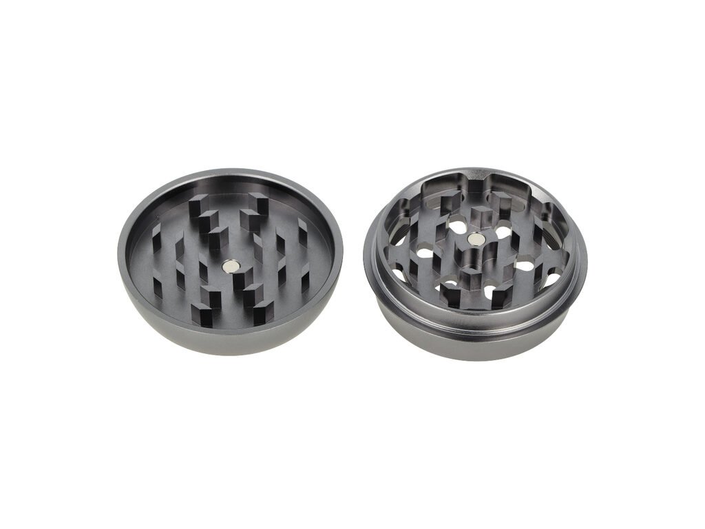 Atraktivní kovová drtička tabáku a bylin Super Heroes Antracit. Čtyřdílný hliníkový drtič konopí a dalších bylinek se závitem, sítkem a zásobníkem je vyroben z eloxovaného hliníku CNC technologií. Drtička v antracitovém provedení má hladký povrch v metalickém provedení. Drtící část se zásobníkem je pevně spojená na závit, víčko na magnet. Toto zajišťuje pohodlné používání drtiče a současně pevný spoj. Broušené ostří nožů ve tvaru diamantu velmi jemně nadrtí vaši směs do požadované hrubosti. Drtič je dodávaný v kartonové krabičce.