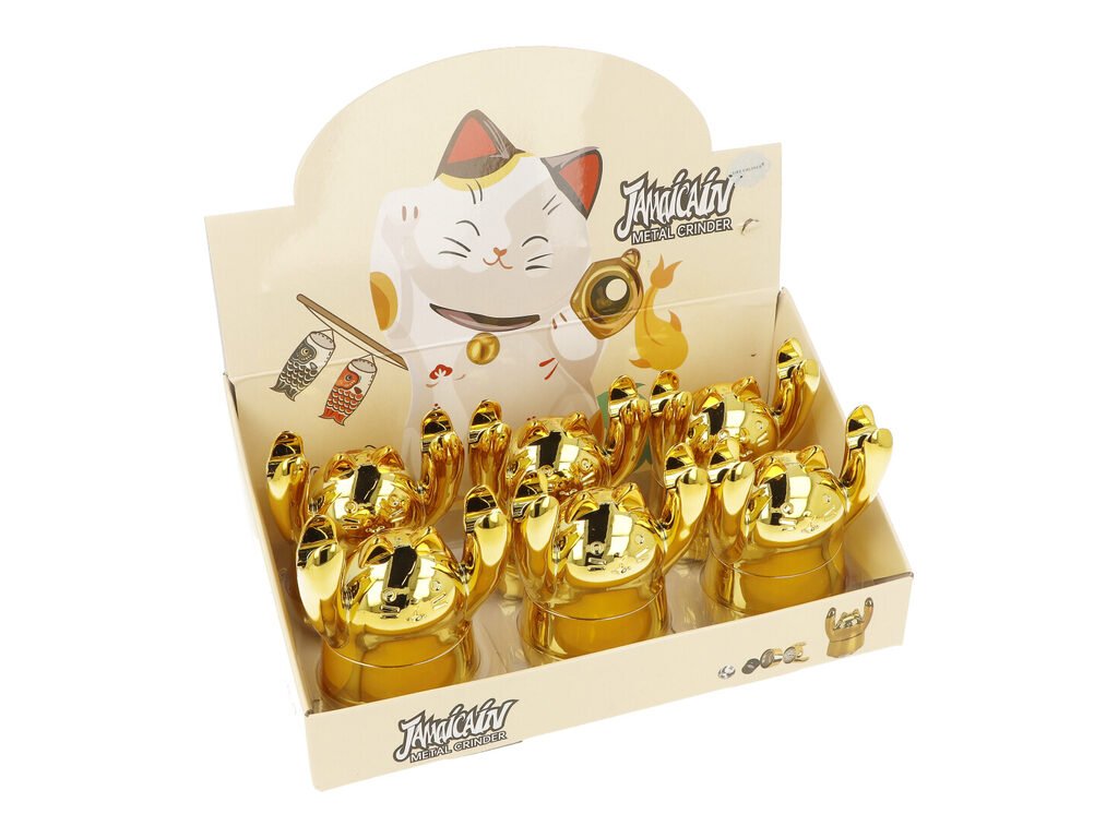 Kovová drtička tabáku a bylin Cat Gold ve tvaru kočky. Čtyřdílný drtič konopí a dalších bylinek se závitem, zásobníkem a sítkem. Hliníková drtička zasazená v plastovém pouzdře má povrch v leštěném zlatém provedení. Na spodní straně drtičky najdeme zásobník se sítkem upevněný na závit. Horní a spodní část drtičky je spojená magnetem. Broušené ostří nožů ve tvaru diamantu velmi jemně nadrtí vaši směs do požadované hrubosti. Zdvižené "ruce" lze využít jako stojánek na papírky, hotovou cigaretu apod. Cena je uvedena za 1 ks.