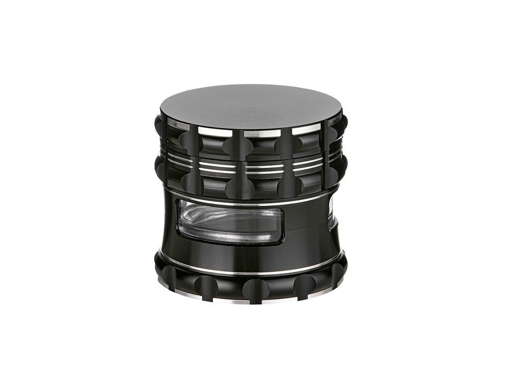 Kovový drtič tabáku a bylin Super Heroes s okénkem. Čtyřdílná hliníková drtička konopí a jiných bylinek v černém provedení je vyrobena CNC technologií. Drtící část je pevně spojená na závit, víčko na magnet. Díky okénku máte přehled o nadrceném množství byliny. Broušené ostří nožů ve tvaru čtyřhranu velmi jemně nadrtí vaši směs do požadované hrubosti.