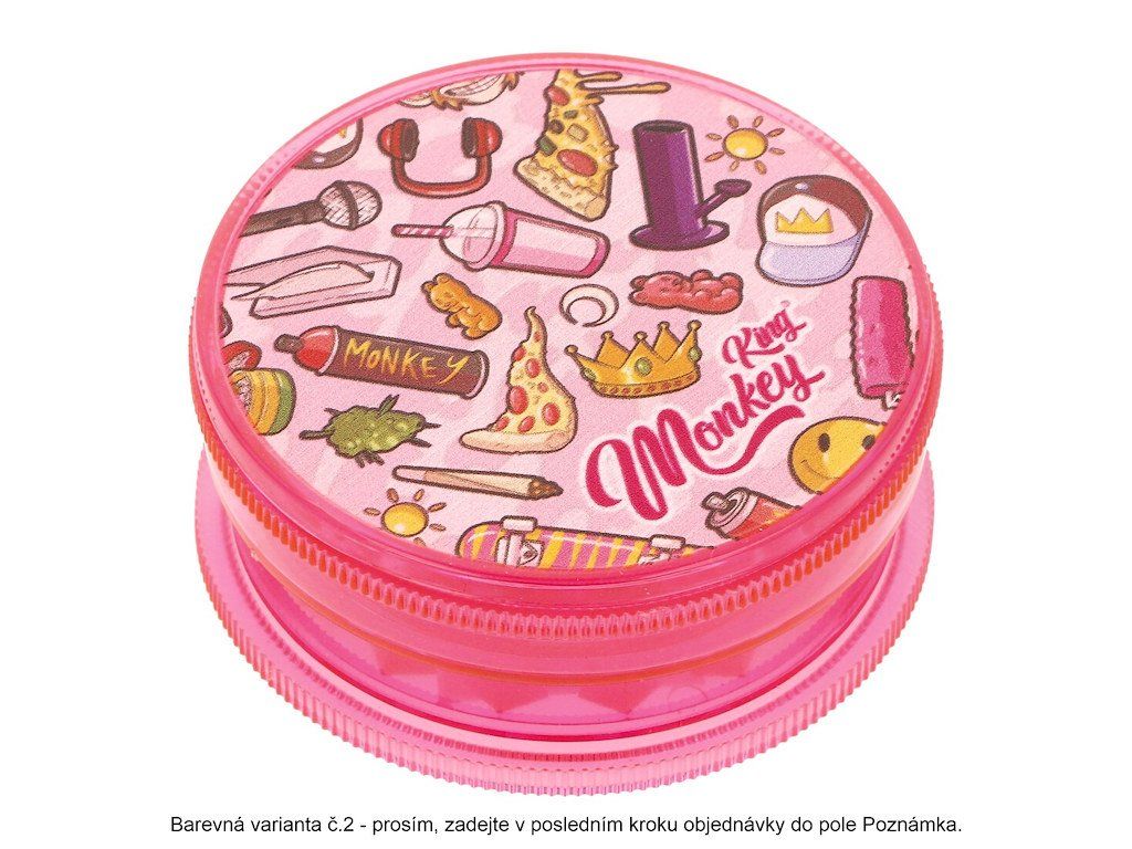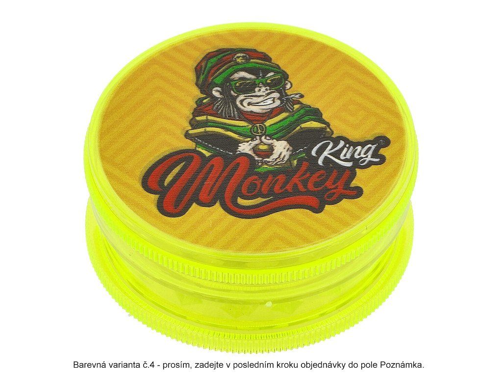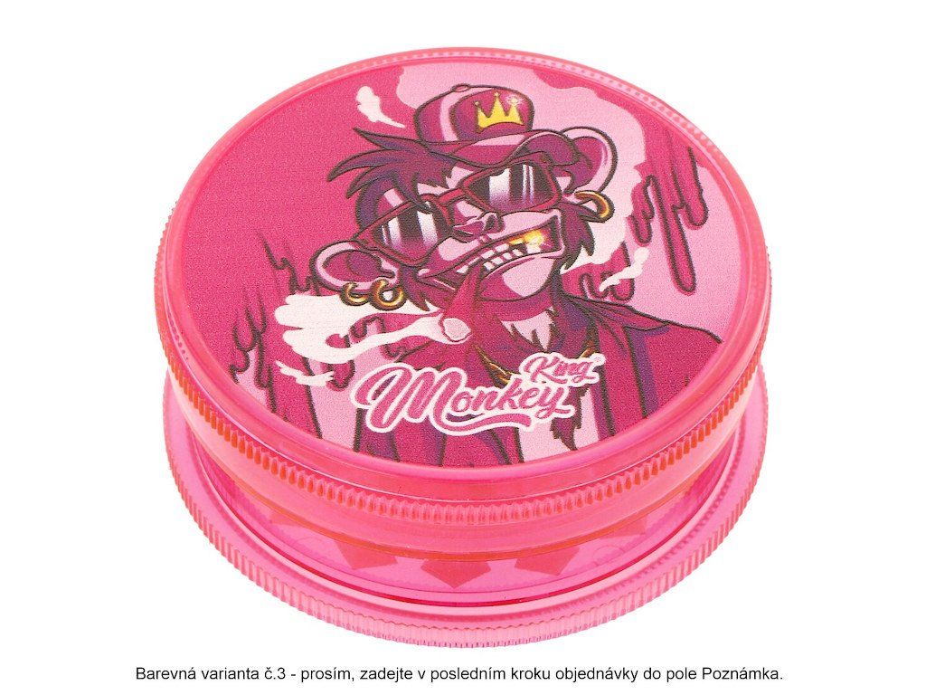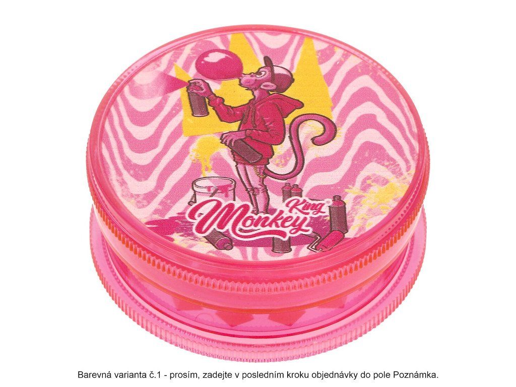 Plastová drtička na konopí, tabák, a jiné bylinky. Dvojdílný drtič Monkey King Transparent v barevném transparentním provedení je spojený na magnet. Horní strana drtiče je zdobená barevným motivem. Ostří ve tvaru diamantu se špičkou jemně nadrtí směs do požadované hrubosti. Cena je uvedena za 1 ks. Před odesláním objednávky uveďte číslo barevného provedení do poznámky.