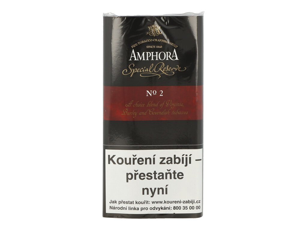 Tabák do dýmky Amphora Special Reserve No 2. Aromatizovaná tabáková směs tvořená tabáky Burley a Black Cavendish s přidaným třešňovým aroma, které podtrhuje výslednou chuť tabáku. Prodej po celém balení(boxu) 5 ks. Cena je uvedená za 1 ks.