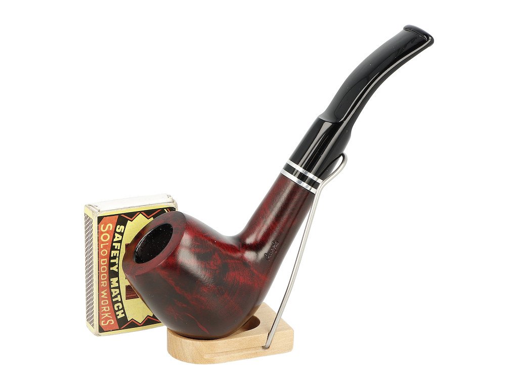 Dýmka s filtrem 9 mm. Zahnutá dýmka Angelo Capri Bent Brown je precizně vyrobená z jakostního brierového dřeva. Mezi troubelem a náustkem jsou vložené dva ozdobné kovové kroužky stříbrné barvy. Filtr a zobrazený stojánek nejsou součástí balení dýmky.