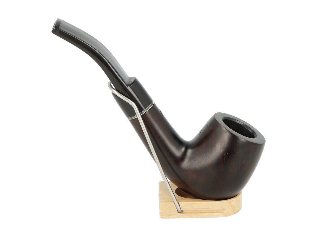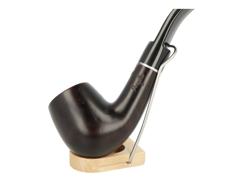Zahnutá brierová dýmka Angelo s filtrem 9 mm. Dýmka vyrobená z brierového dřeva je ukončená akrylátovým náustkem. Dýmky Angelo jsou vhodnou volbou pro každodenní kouření díky skvělému poměru cena vs výkon. Dýmka je dodávaná bez filtru. Zobrazený stojánek není součástí balení dýmky.