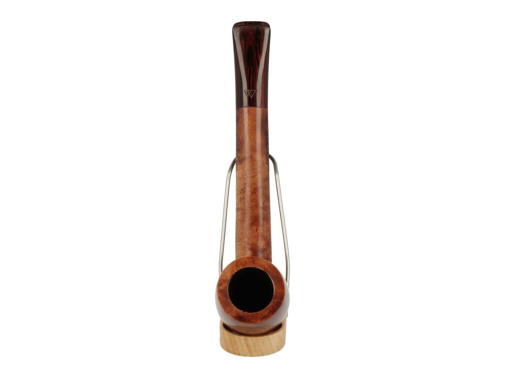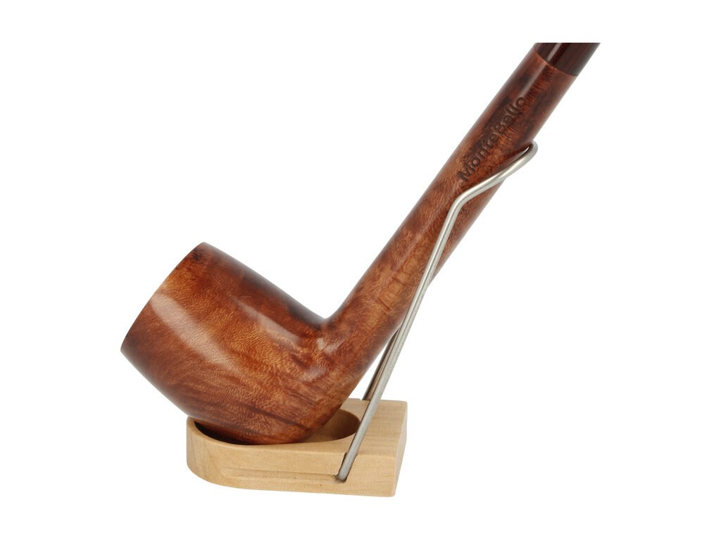 Rovná brierová dýmka bez filtru je ve tmavším hnědém provedení s výraznější kresbou. Dýmka je na boku zdobená rytým nápisem "MonteBello". Hladká hlava dýmky je lesklá stejně jako barevný náustek.