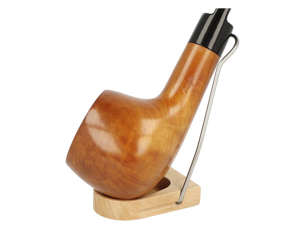 Rovná dýmka Angelo je ve tmavém bordovém provedení s jemnou kresbou. Na boční straně dýmky najdeme rytý nápis "Angelo". Hladká hlava dýmky je lesklá, černý akrylátový náustek taktéž.