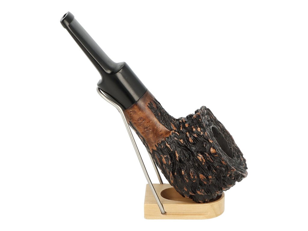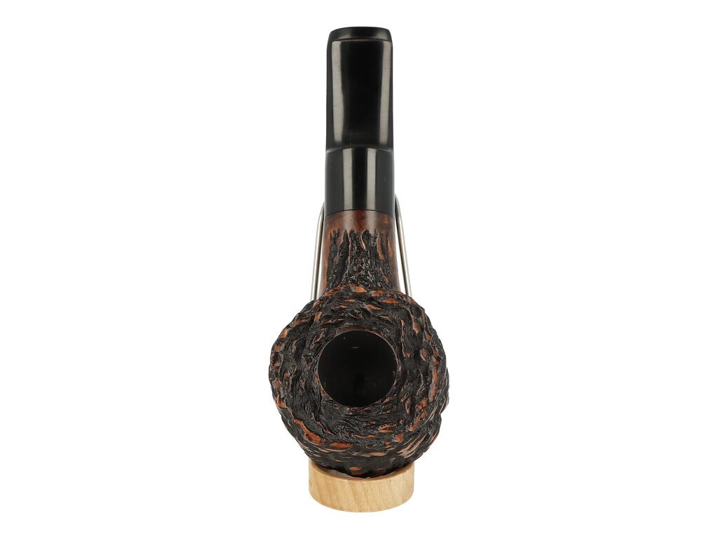 Rovná briárová dýmka je ve tmavém černo bordovém rustikálním provedení s málo výraznou kresbou. Na boku je dýmka zdobená rytým nápisem "BPK". Hlava dýmky je lesklá, černý akrylátový náustek také.