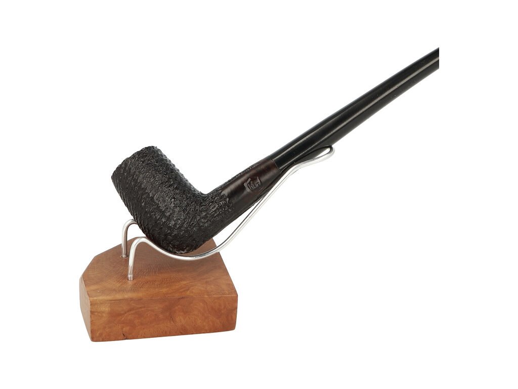Prohnutá tzv. televizní dýmka s chladičem je ve tmavším hnědo černém provedení s kresbou. Na boku je dýmka zdobená rytým nápisem "MT". Hrubší hlava dýmky je polomatná, černý ebonitový náustek lesklý.
