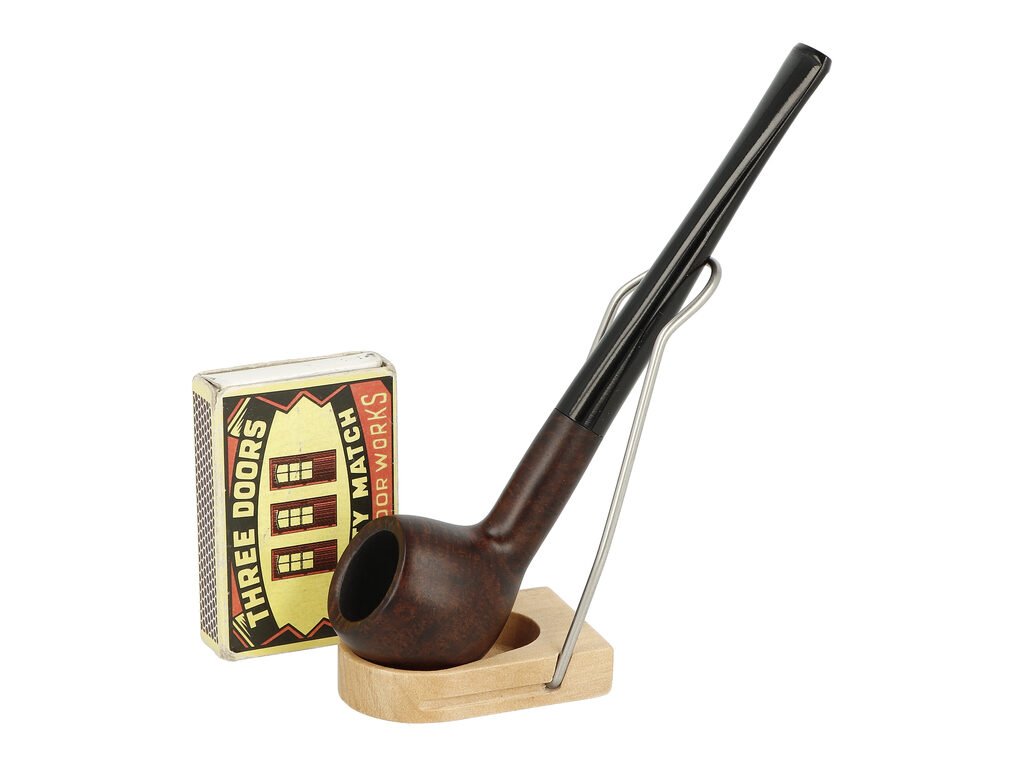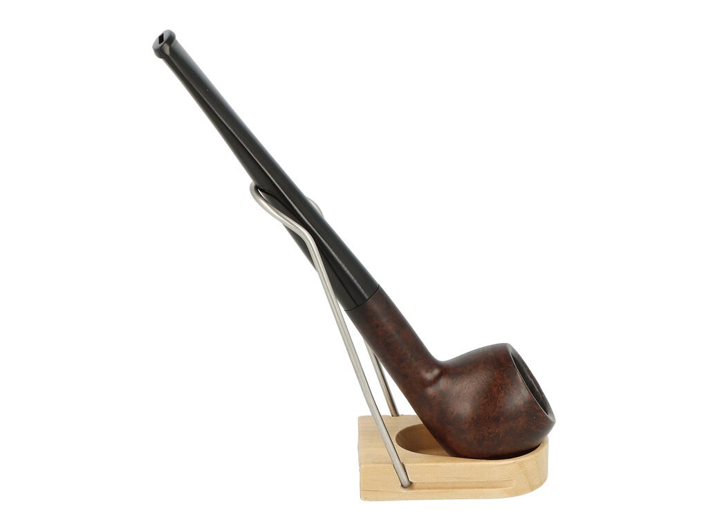Rovná dýmka z briáru je ve tmavě hnědém provedení s málo výraznou kresbou. Hlava dýmky je lesklá, černý ebonitový náustek také.