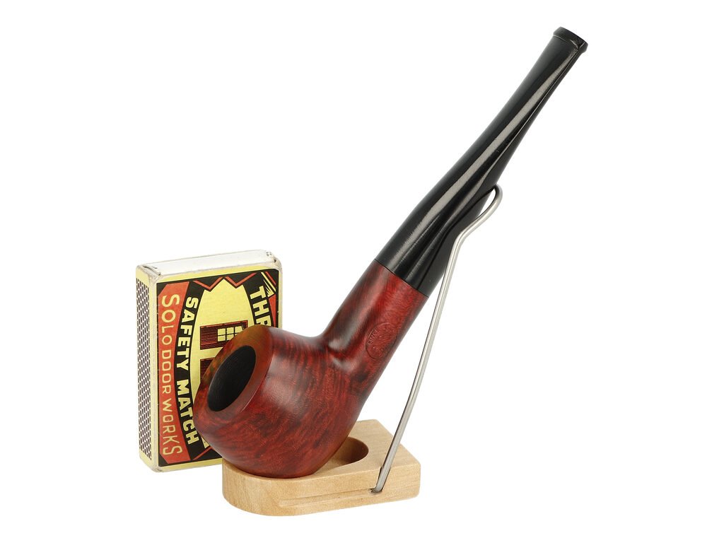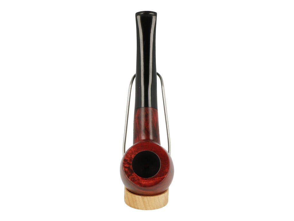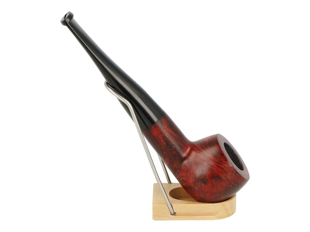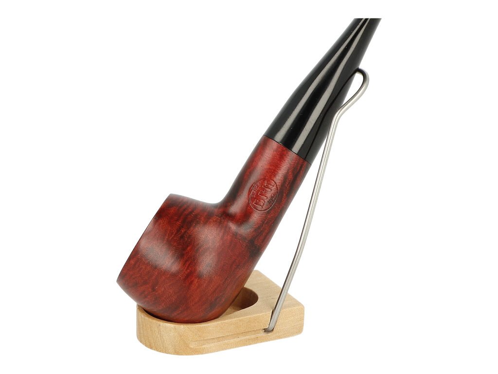 Rovná dýmka z briáru je v bordovém provedení výraznější kresbou. Na boku je dýmka zdobená rytým nápisem "BPK". Hlava dýmky je lesklá, černý akrylátový náustek také.