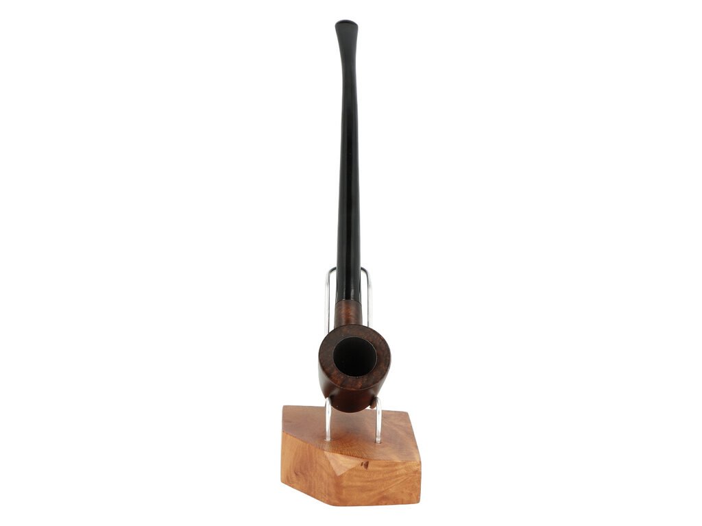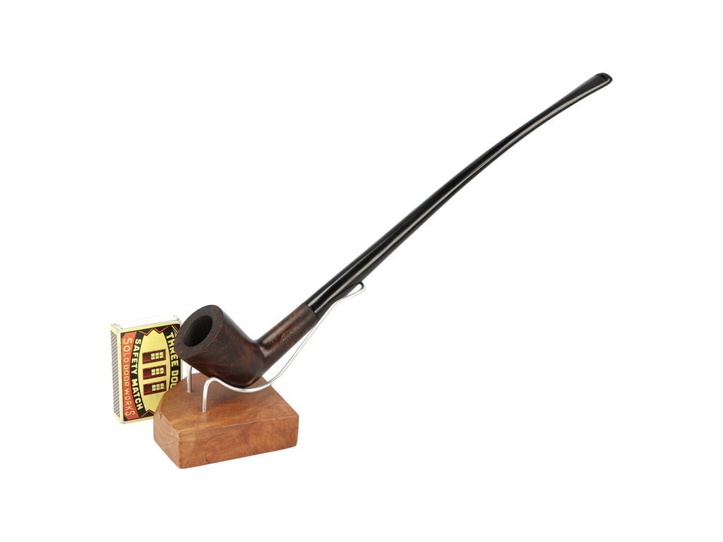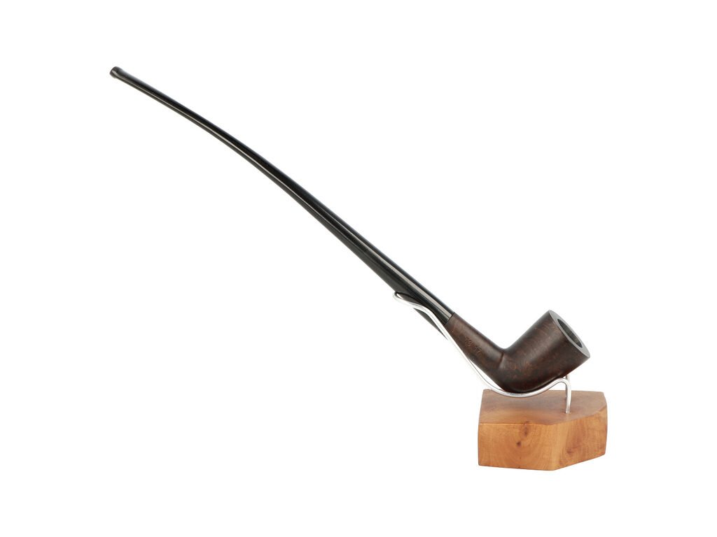 Dlouhá čtenářská dýmka BPK s chladičem. Kvalitní briárová dýmka od známého výrobce BPK Proseč je precizně a ručně vyrobená. V dýmce s chladičem se nepoužívá filtr. Kovový chladič vložený mezi troubelem a náustkem slouží jako kondenzační část a sráží se na něm močka. Díky tomu jazyk tolik nepálí, kouření je "chladnější" a tím pádem více příjemné. Chladič je součástí dýmky. Dýmka je dodávána v originální krabičce. Zobrazený stojánek není součástí balení dýmky.