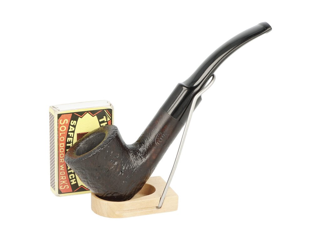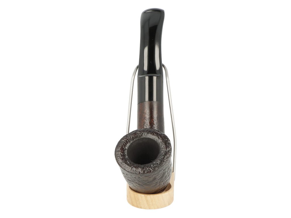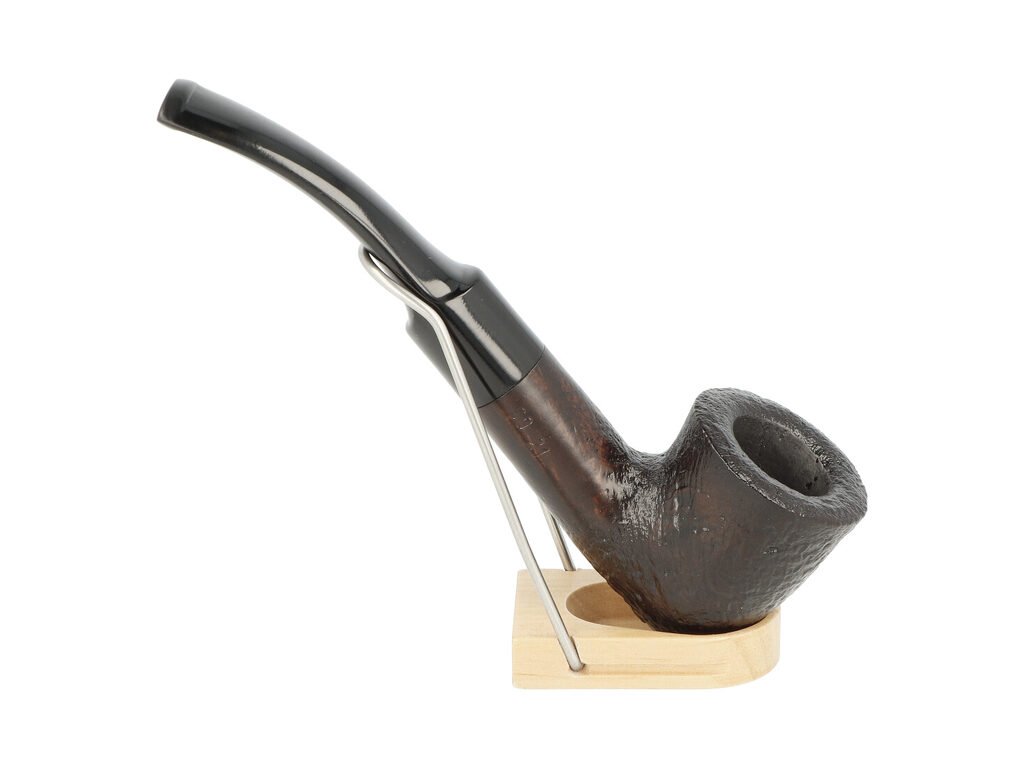 Mírně zahnutá dýmka je ve hnědém rustikálním provedení s jemnou kresbou. Hlava dýmky je polomatná, černý ebonitový náustek lesklý.