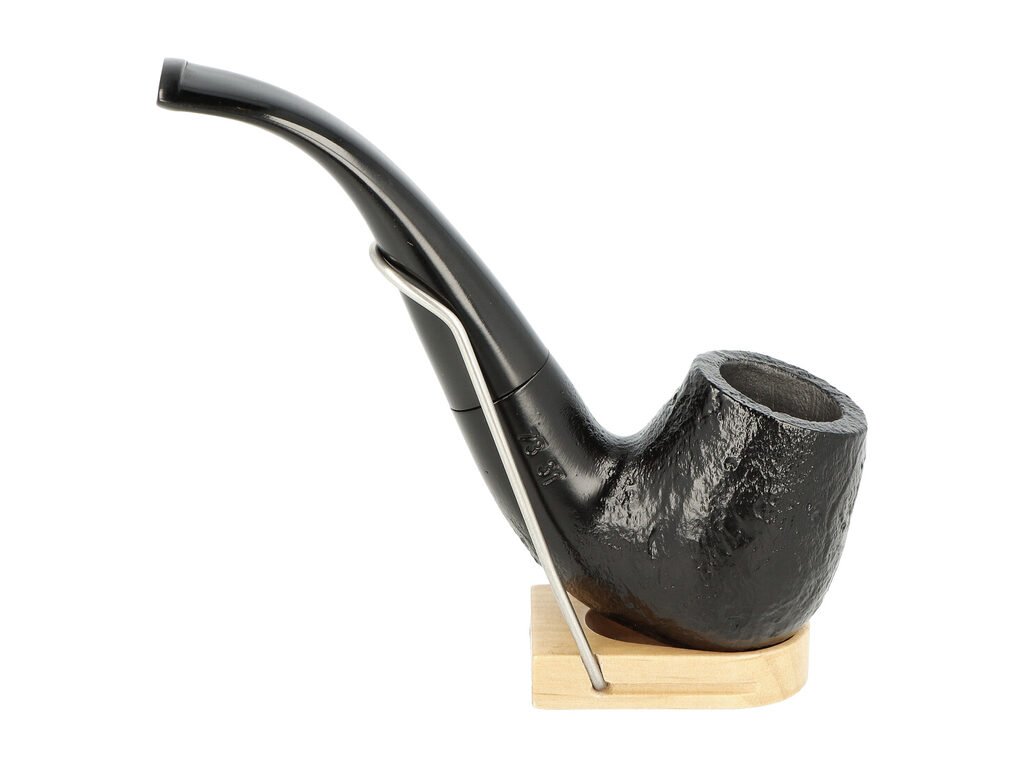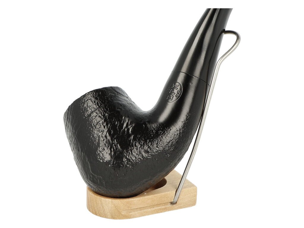 Zahnutá briárová dýmka je v černé barvě bez kresby. Na boku je dýmka zdobená rytým nápisem "BPK". Hlava dýmky je lesklá, černý akrylátový náustek také.