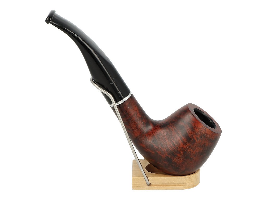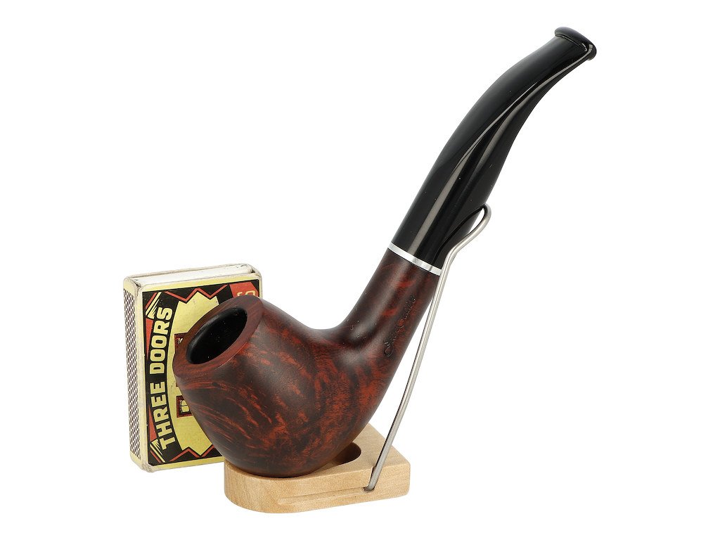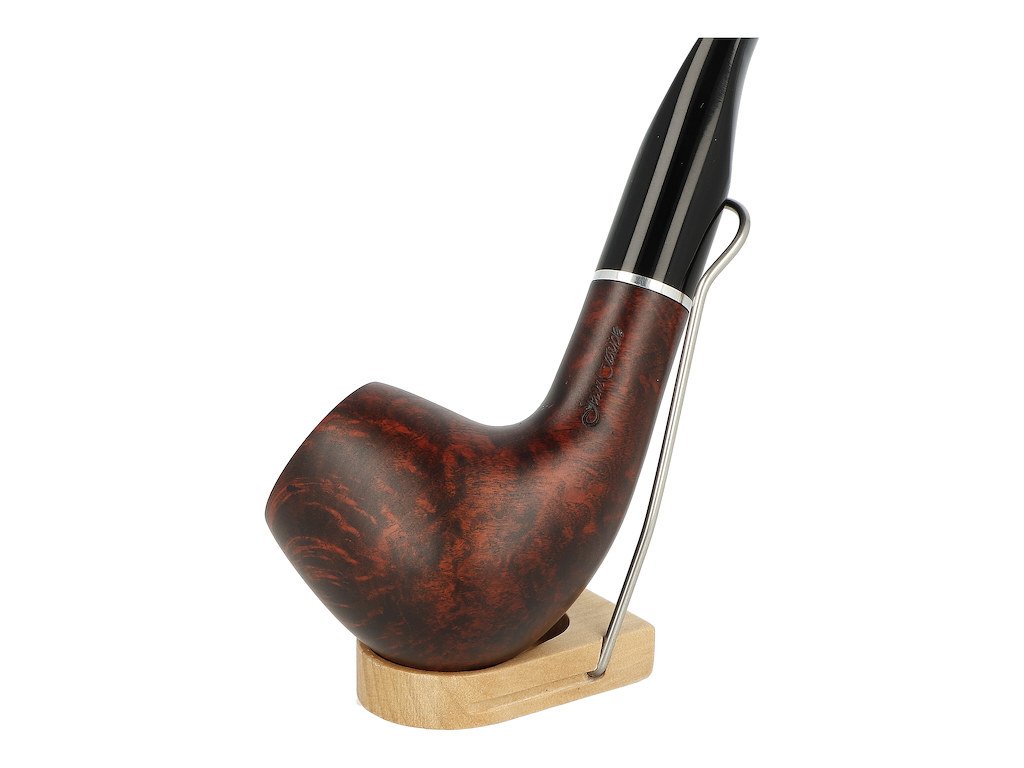 Zahnutá dýmka s filtrem Jean Claude je ve tmavě hnědém provedení s málo výraznou kresbou. Hlava dýmky je lesklá, akrylátový náustek taktéž.