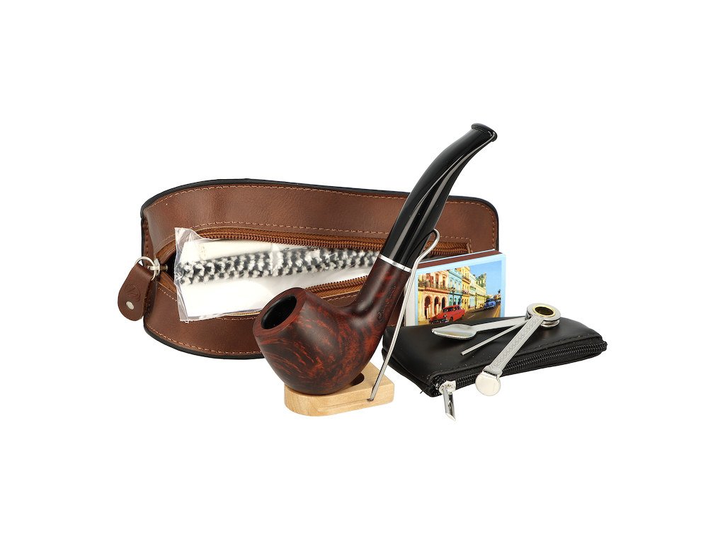 Obsah balení: 1x dýmka, 1x dusátko, 3x filtry do dýmky, 3x dýmkové čističe, 1x zápalky, 1x kapsička na zip, 1x pouzdro na dýmku