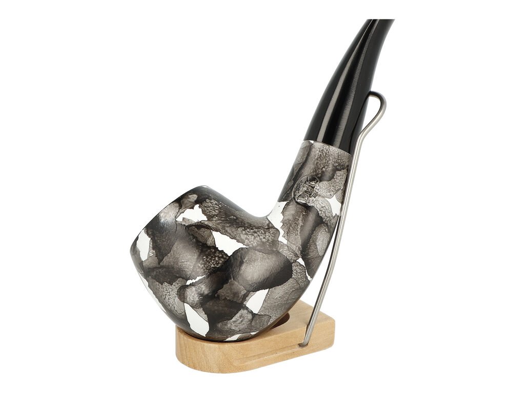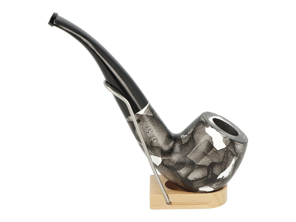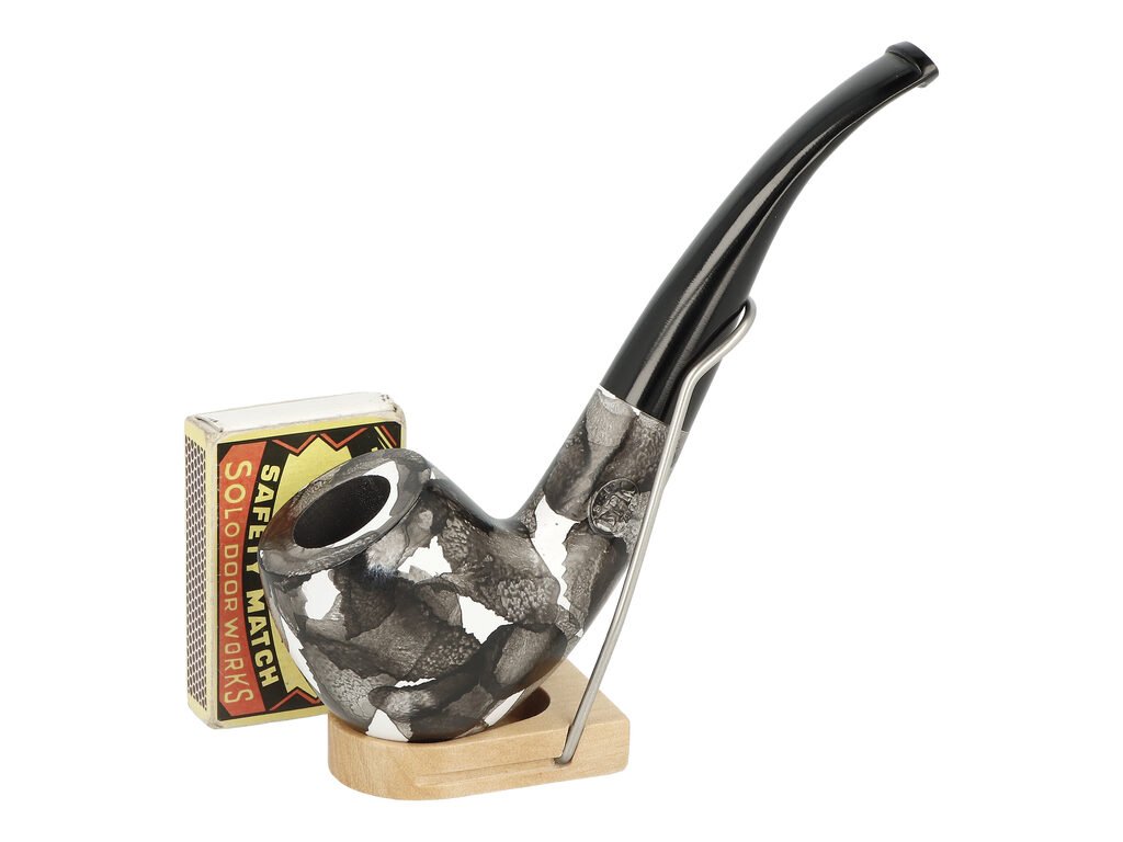 Zahnutá dýmka je v černém provedení s barevnými tečkami bez kresby. Na boku je dýmka zdobená rytým nápisem "Since BPK 1842". Hladká hlava dýmky je lesklá, černý ebonitový náustek taktéž.