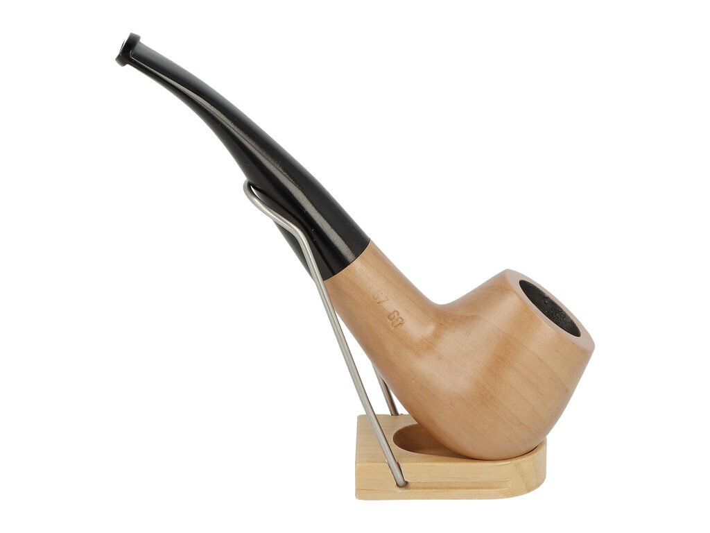 Mírně zahnutá dýmka je ve světlém přírodním provedení s jemnou kresbou. Na boku je dýmka zdobená rytým nápisem "Since BPK 1842". Hladká hlava dýmky je lesklá, černý ebonitový náustek taktéž.