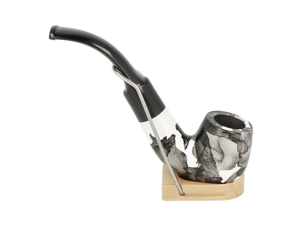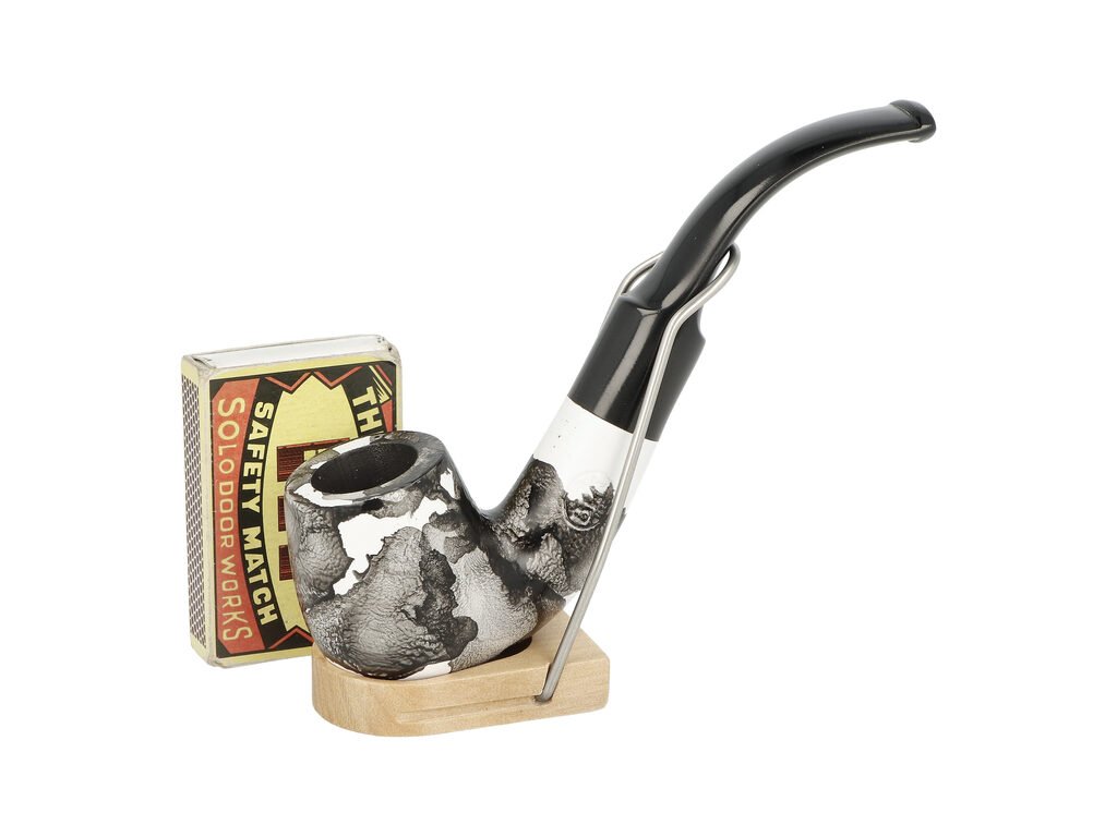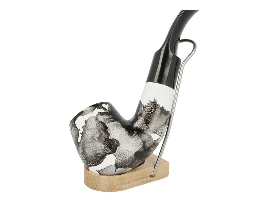 Zahnutá dýmka je ve hnědo béžovém provedení s jemnnou kresbu. Na boku je dýmka zdobená rytým nápisem "Since BPK 1842". Hladká hlava dýmky je pololesklá, černý ebonitový náustek lesklý. Dýmka je díky svému zahnutému tvaru také vhodná pro začínající kuřáky dýmky.