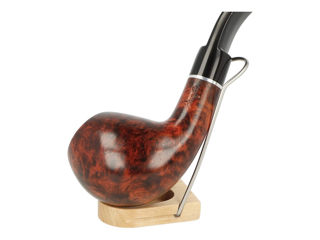 Zahnutá brierová dýmka Angelo s filtrem 9 mm. Dýmka vyrobená z brierového dřeva je ukončená akrylátovým náustkem. Dýmky Angelo jsou vhodnou volbou pro každodenní kouření díky skvělému poměru cena vs výkon. Dýmka je dodávaná bez filtru. Zobrazený stojánek není součástí balení dýmky.