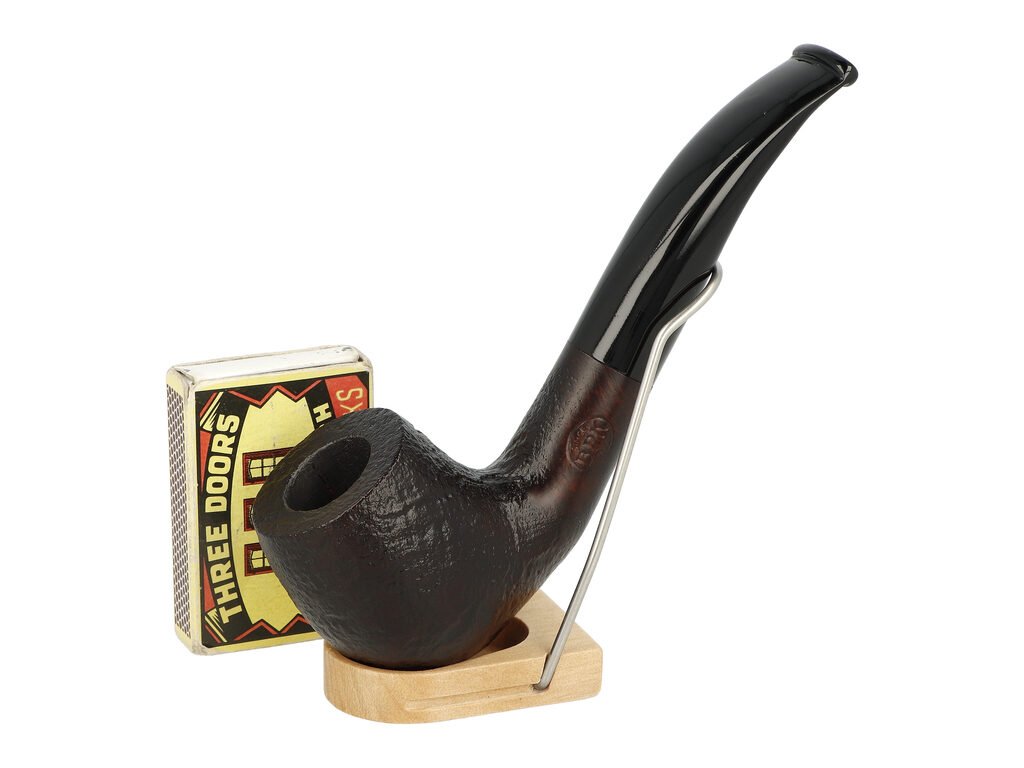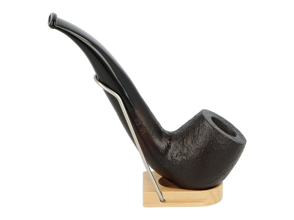 Zahnutá dýmka s filtrem je ve tmavém hnědém rustikálním provedení s nevýraznou kresbou. Na boku je dýmka zdobená rytým nápisem "Sherlock 1854 England". Hlava dýmky je polomatná oproti lesklému akrylátovému náustku.