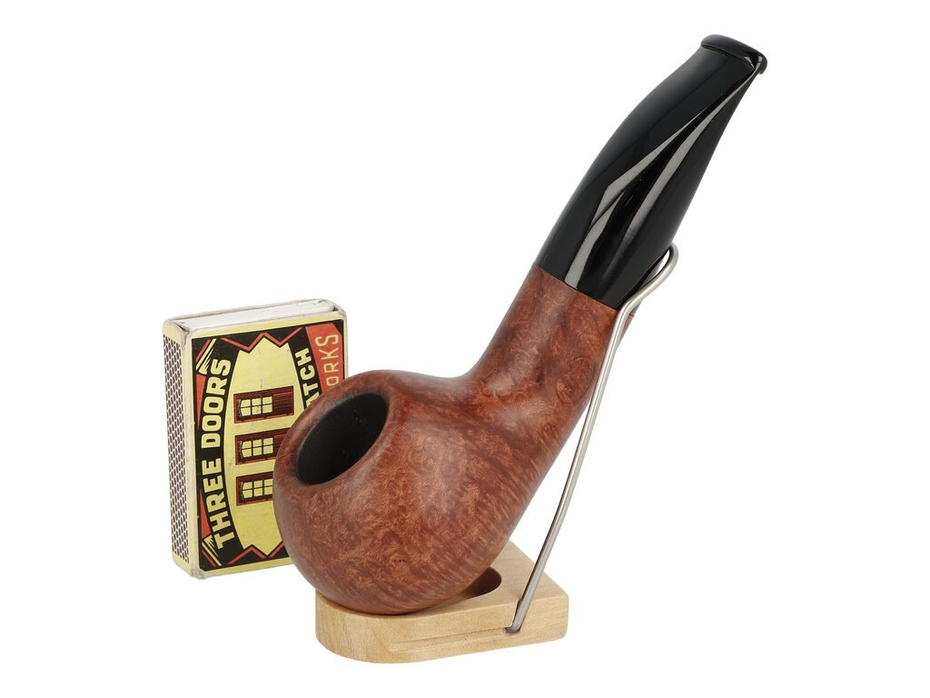 Lehce prohnutá dýmka s filtrem je ve tmavě hnědém odstínu s méně výraznou kresbou. Masivnější hlava dýmky je polomatná, černý akrylátový náustek lesklý.